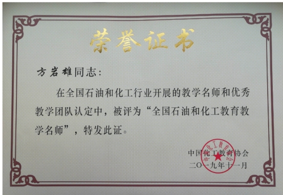 9. 2019年获全国石油和化工教育优秀教学团队。