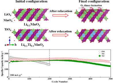 针对富锂正极循环稳定性差的问题,课题组设计了表面多相集成技术(Angew. Chem. Int. Ed. 2020, 59, 7778; Angew. Chem. Int. Ed. 2020, 59, 23061),抑制了富锂正极界面副反应并提升了材料长循环性能。在此基础上,课题组创造性提出“二合一表面多相集成/体相掺杂策略”,有效稳固了高倍率下富锂正极界面性能,获得1C充放电倍率下500次循环后85%的容量保持率,开辟了富锂正极材料修饰改性新思路。相关研究成果以题为“Ti-based surface integrated layer and bulk doping for stable voltage and long life of Li-rich layered cathodes”发表在国际材料领域权威期刊Advanced Functional Materials。