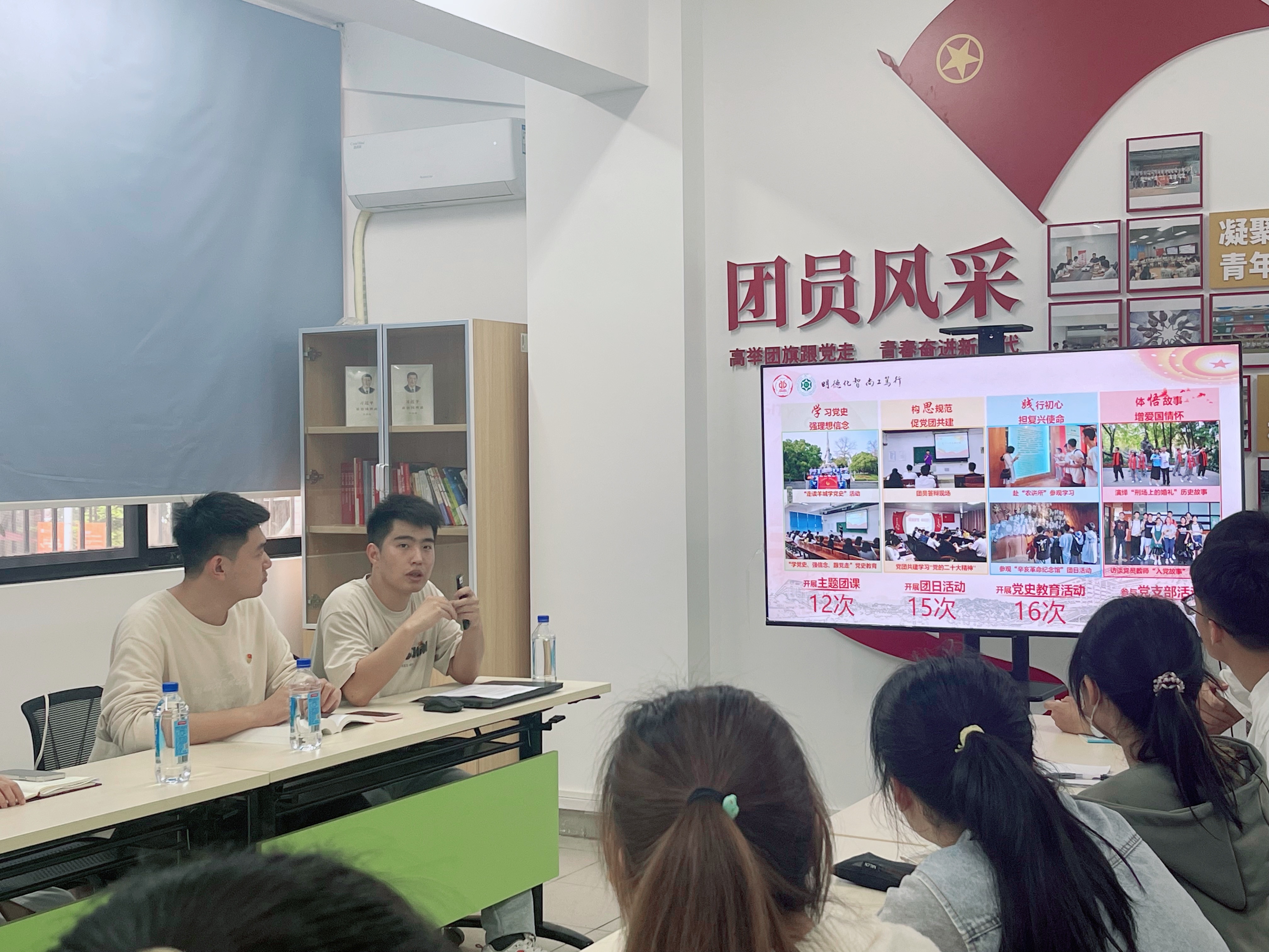 在讨论交流环节,支部书记林沛与在座同学围绕自身发展及工作实际展开讨论交流,并从以下三方面提出希望:一要加强党团协同建设,提升党建带团建的引领力。党员要发挥思想引领作用,带头参与“青年大学习”,提升支部学习党史教育的积极性;二要创新工作机制,提升党建带团建的组织力。通过划分团小组,借助学习强国建立线上党团支部阵地,以党员引领团小组开展集中理论学习,实现“共促、共研、共学”常态化;三要重视理论实践结合,提升党建带团建的服务力。立足支部优势及专业特色,积极参与创新创业、社会实践、志愿服务等实践活动。