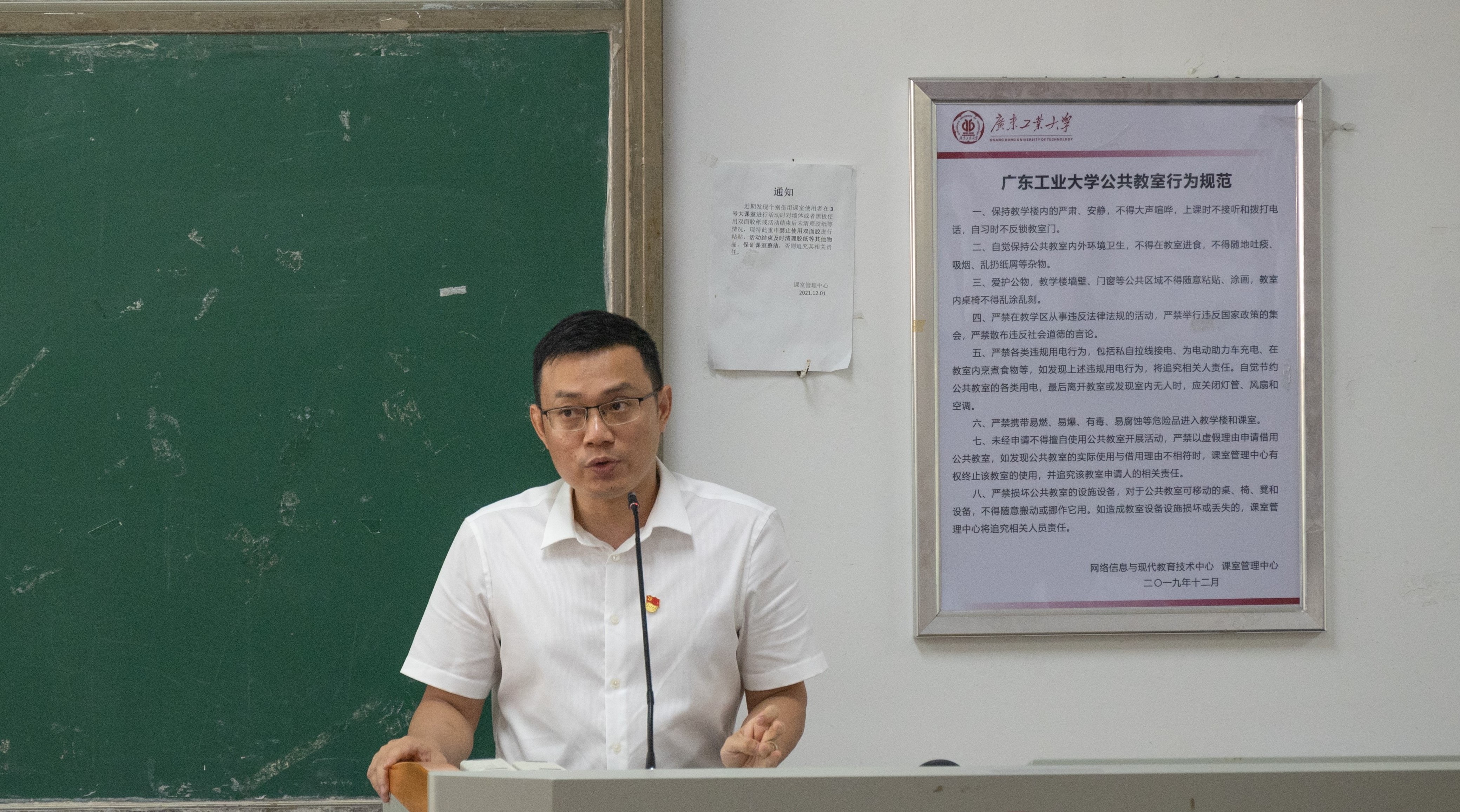 会议在庄重肃穆的国歌中拉开帷幕。首先,学院党委书记周东斌讲话。他结合习近平总书记在党的二十大报告中对青年的寄语,号召广大青年要坚定听党话、跟党走。其次,他分享了对近期备受全校师生瞩目的广工篮球夺冠的感受:“广工学子夺得CUBAL总冠军,令人激动和鼓舞!”“广工男篮健儿充分展现了顽强拼搏、永不言弃、敢于胜利的精神,真是好样的!希望大家向他们学习,在奋斗中释放青春激情,追逐青春理想。”最后,他向在场党员提出了三点希望:一是坚定理想信念,牢记初心使命;二是提高思想认识,坚守廉洁自律;三是坚持终身学习,践行知行合一。他代表学院党委为即将奔赴新征程的学子们致以衷心的祝福,寄语毕业生党员要成为党和人民殷切期待的先锋分子,在青春的赛道上跑出最好成绩。