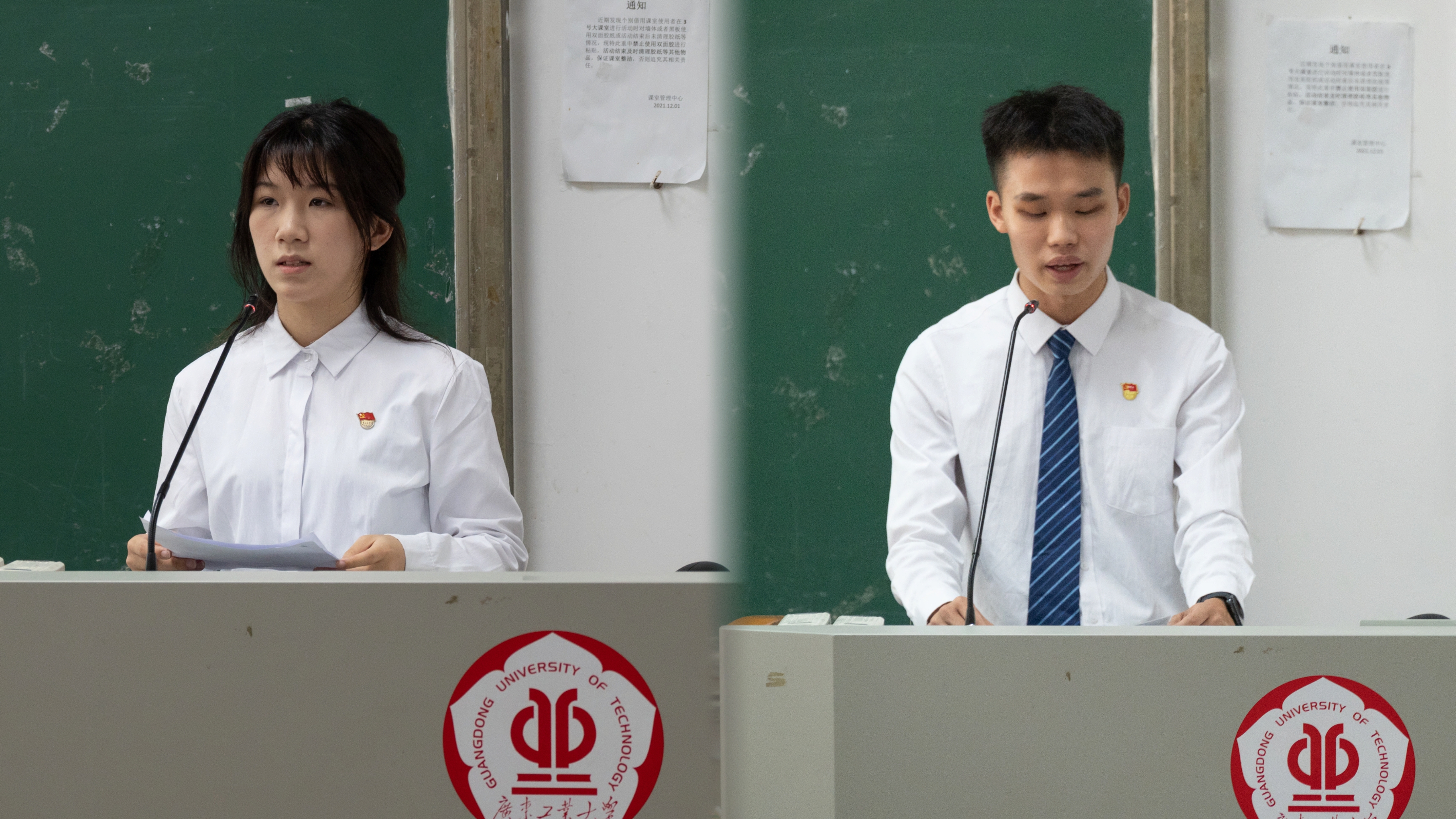 随后,新发展党员代表陈瑶同学发言。她通过讲述自身的入党初心,号召同学们在日常学习和工作中,时刻牢记党员身份,积极发挥党员先锋模范带头作用。毕业生党员代表林康迪同学代表2023届全体毕业生党员向学院和学校表示感谢,他回望自己在广工树理想、磨意志、学知识、拓视野的难忘经历,结合化学化工专业讲述了作为青年大学生党员的初心使命和理想追求,并代表毕业生党员许下庄重承诺:“无论我们身处何方,我们都要牢记入党誓词,锤炼党性,做新时代的奋进者、开拓者、奉献者,继续书写无愧于青春、无愧于国家、无愧于时代的精彩人生,为轻化发展增添光彩,为广工建设贡献力量,为实现中华民族伟大复兴的中国梦而努力奋斗。”