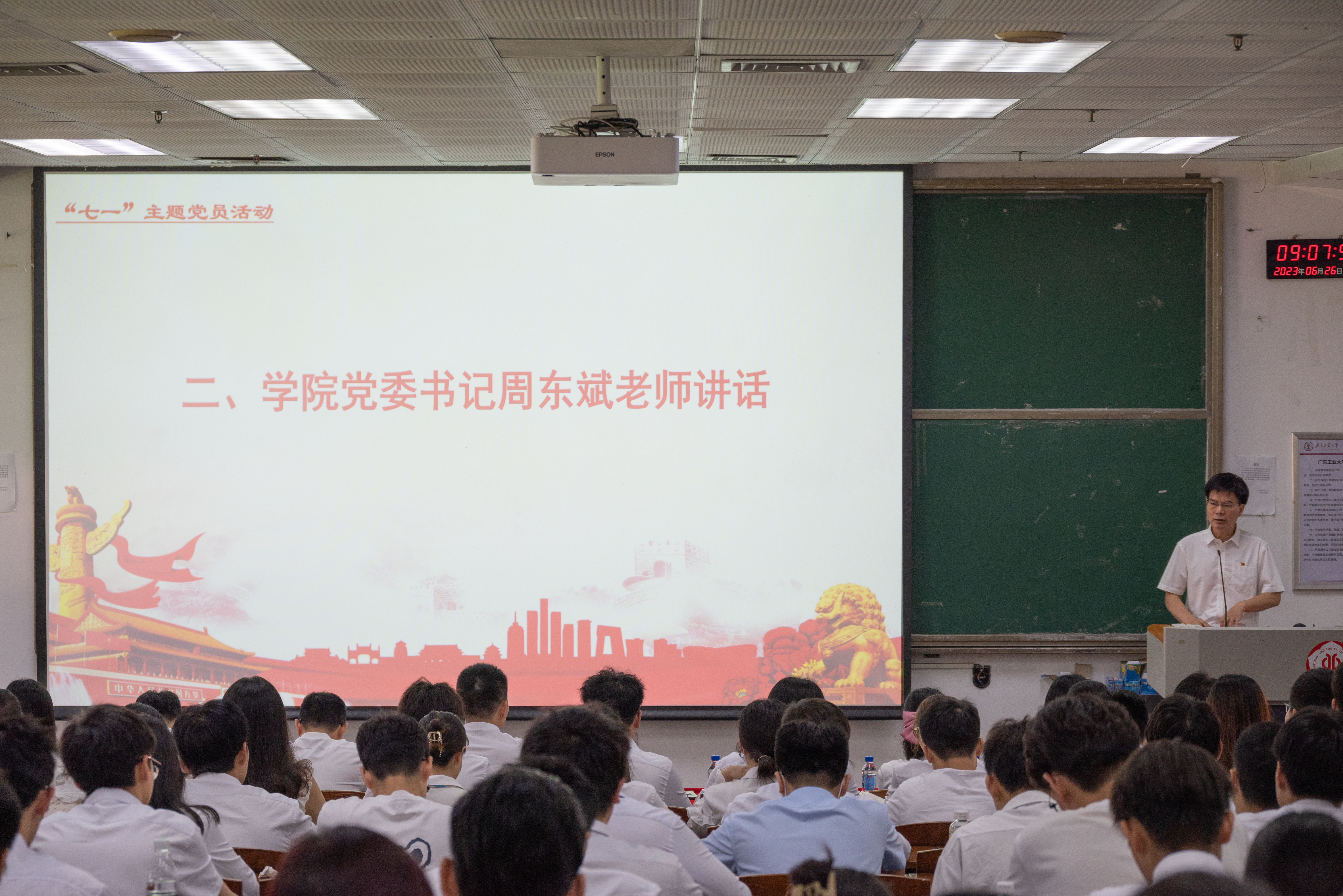 在3号大课室开展2023年“七•一”主题党日活动。学院党委书记周东斌、党委副书记杨刚,离退休第二党支部书记、学院食品系退休党员教师杨云华老师、学院能源化学工程系教师党员、国家高层次青年人才林展教授,学生党支部书记以及学院新发展学生党员和毕业生党员参加活动。