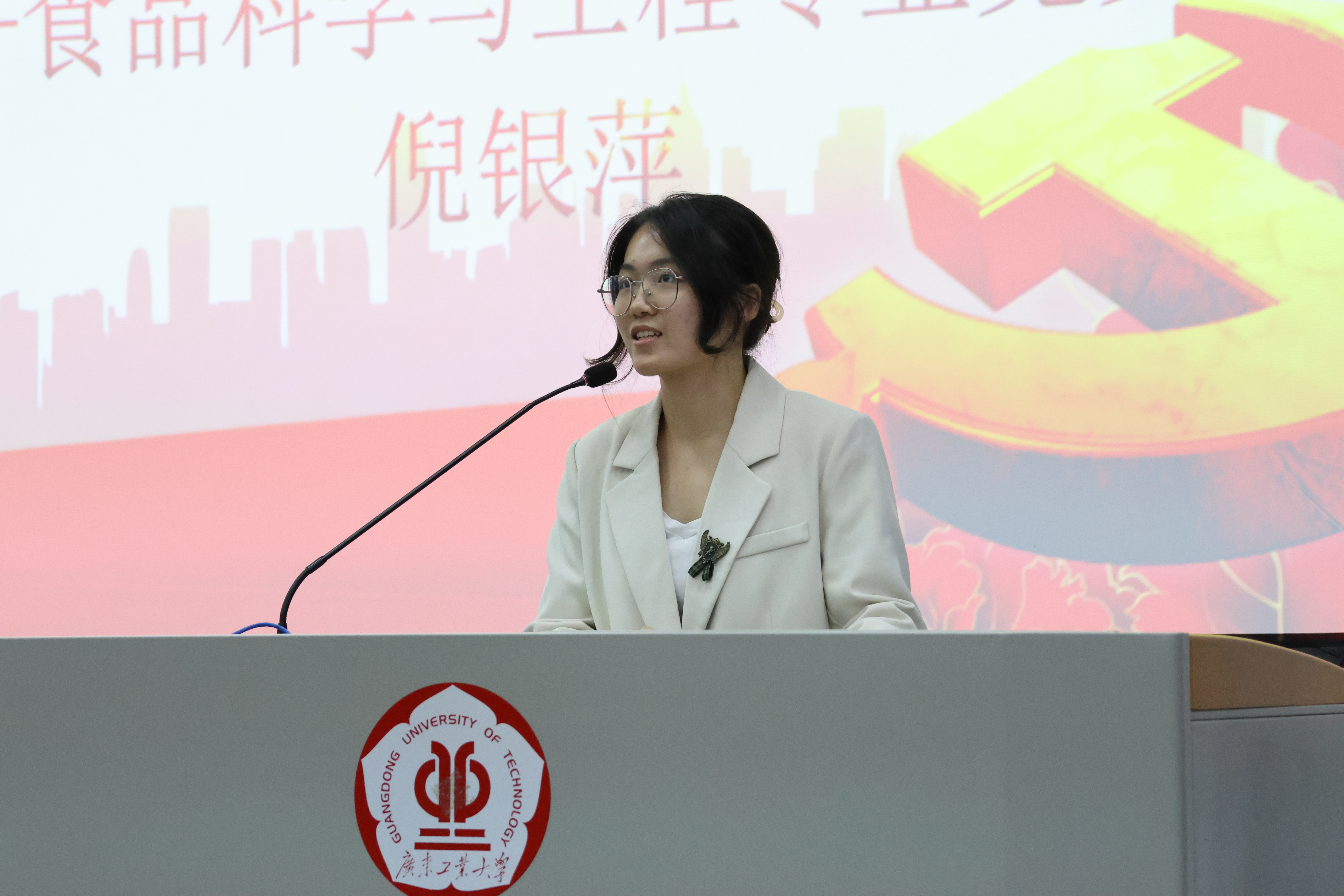 来自食品科学与工程专业党支部的倪银萍,从讲述党的百余年光辉历程及其历史意义出发,结合自己的学习生活实际,强调当代大学生要坚定理想信念,坚持守正创新,勇担时代使命,在青春的赛道上奋力奔跑。