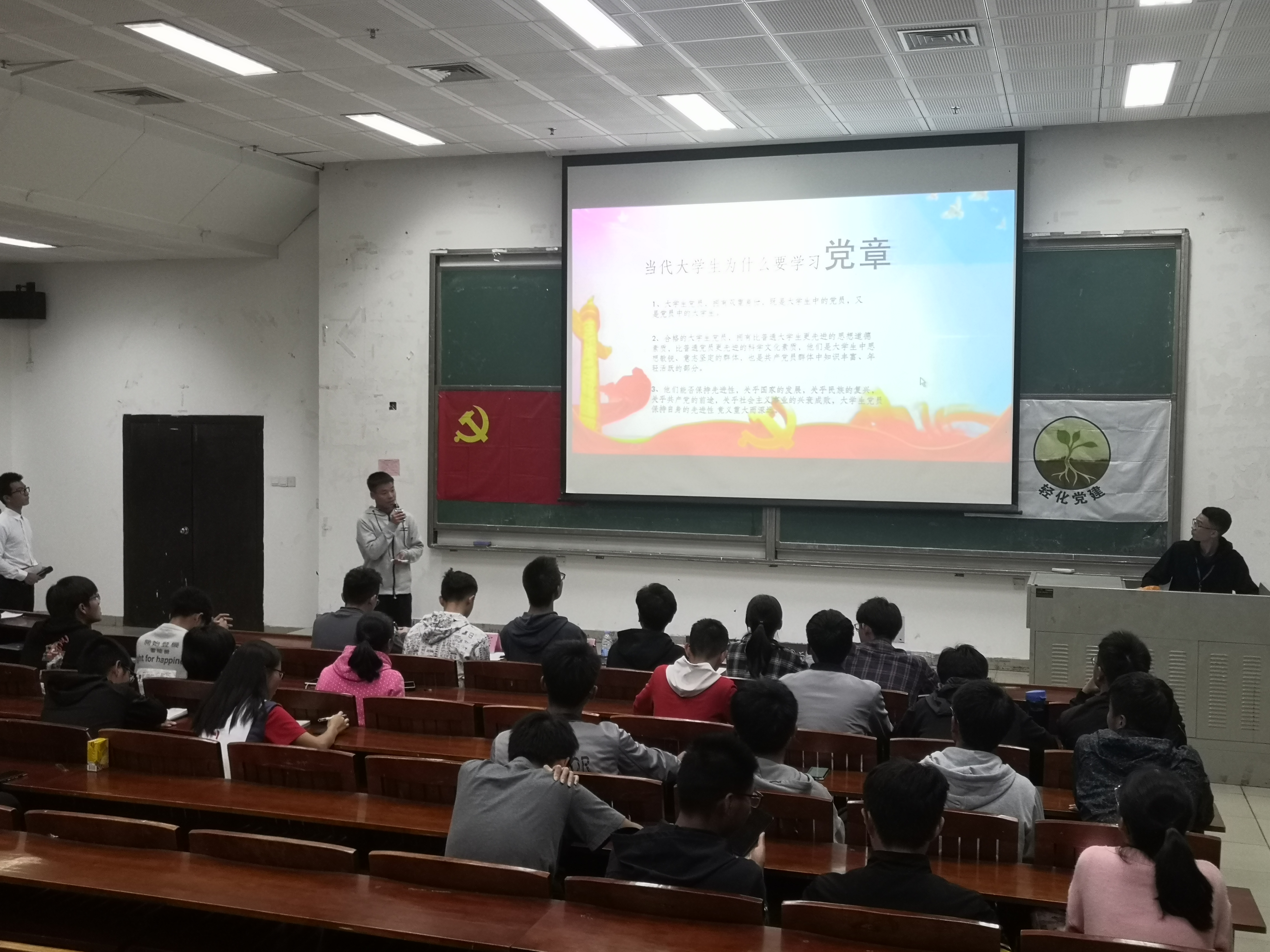 党建工作委员会张正、邓广能、樊松洁、全体工作人员及19级各党章学习小组参与此次活动。