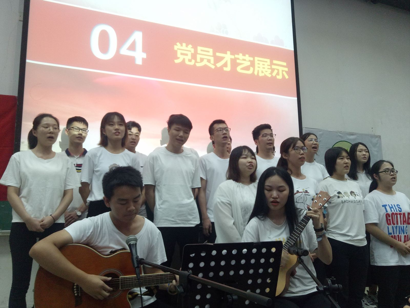 在才艺展示环节,各党支部精心准备了朗诵、合唱、话剧等形式的节目,呈现出内容丰富、形式多样的才艺展示。其中,应用化学第一党支部以一首歌曲《送别》,表达对毕业生党员的祝愿;创新卓越班党支部以吉他弹奏、合唱的形式演绎歌曲《奉献》,表达了甘愿奉献社会、建设祖国的赤子之心;化学工程与工艺第二党支部带来《我和我的祖国》合唱表演,他们高亢嘹亮的歌声使现场的观众激情澎湃,掌声不绝。