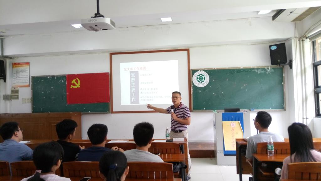 最后奏唱《国际歌》,党员宣誓仪式全部流程结束。在宣誓活动结束后,学院党委苏副书记为全体党员做了一场支部工作培训辅导,主要内容包括基层党组织建设规范化、支部党务工作开展要求,以及严格落实“三会一课”制度等几个方面,特别强调要严格把关发展党员各环节、规范材料填写和妥善保管档案,并针对当前工作现状,提出需继续保持、发扬的经验做法和尚待完善改进的方面。