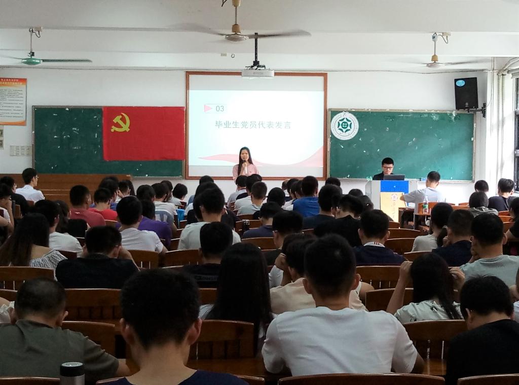 宣誓完毕,毕业生党员宋来思作为学生代表发言,她分享了自己入党的点滴心路历程,以及作为一名党员在平日学习生活工作中的自我要求与表现,勉励在座同学努力学习、积极进取,以实际行动践行“做合格党员”。