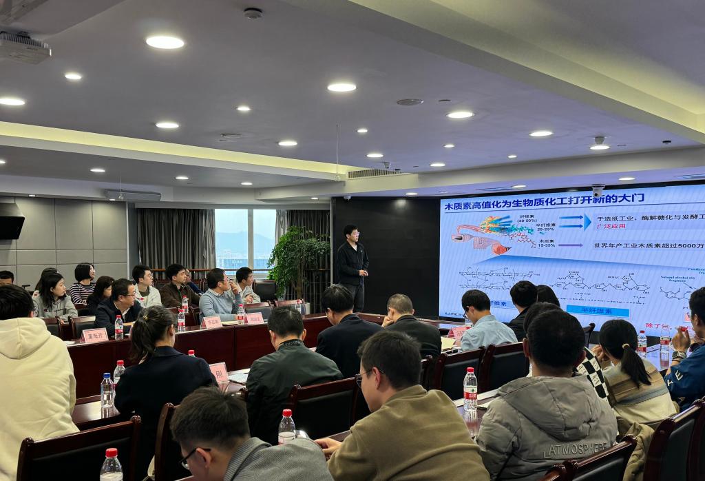 随后,师生们与公司技术团队展开了党建与业务的学术交流活动。学院博士生党员钟磊分享了关于木质素材料在先进储能领域的科研进展。双方围绕党建与业务深度融合、专业技能提升以及人才培养等方面展开了深入探讨和交流。