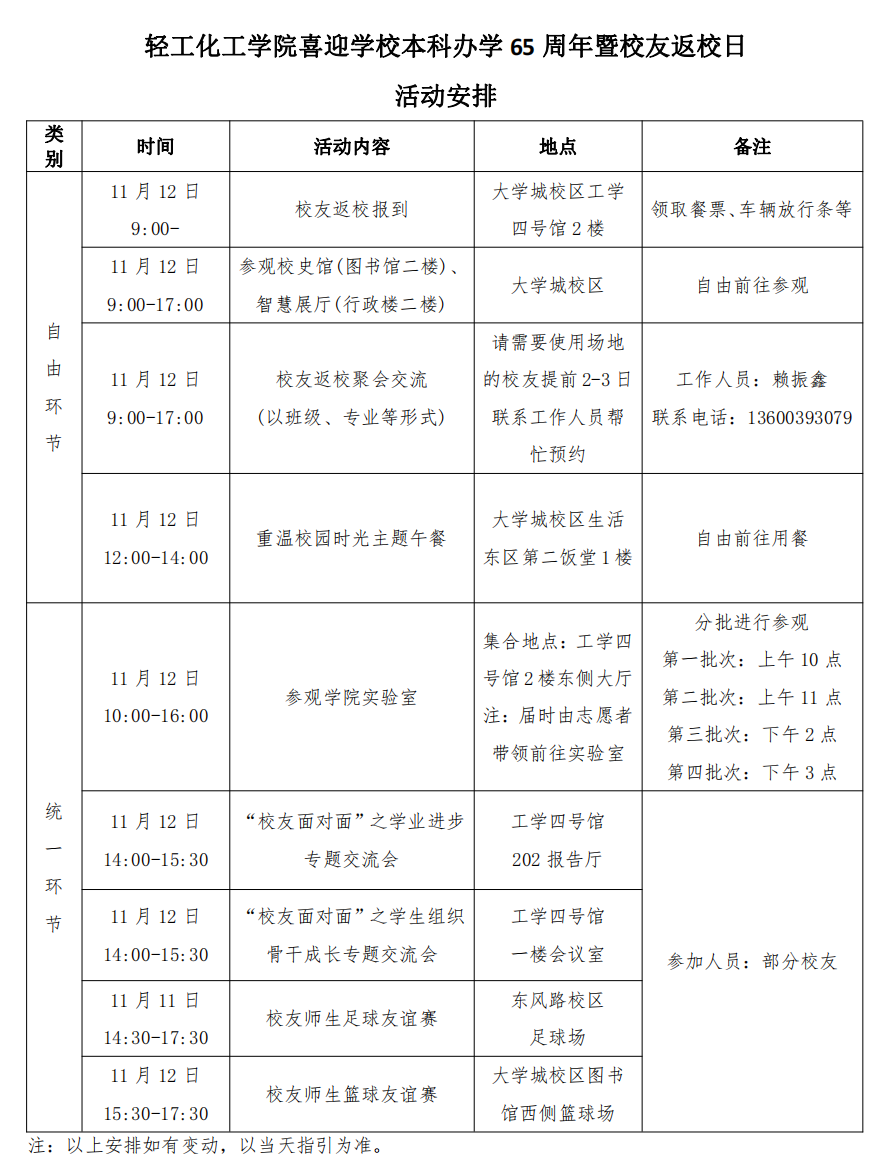 另外,欢迎校友们为学校本科办学65周年捐赠物资和校友返校纪念品。