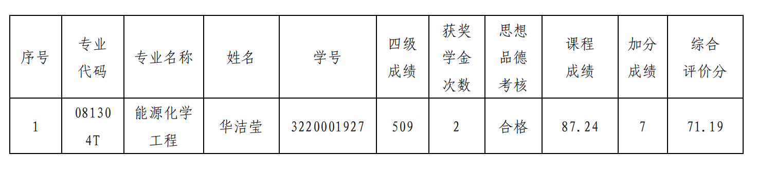 2020级能源化学工程专业有一位学生自愿放弃贝勒漫画 2024年推荐免试攻读研究生的资格,按照同专业总成绩由高到低排序递补的原则,拟递补推荐学生信息如下: