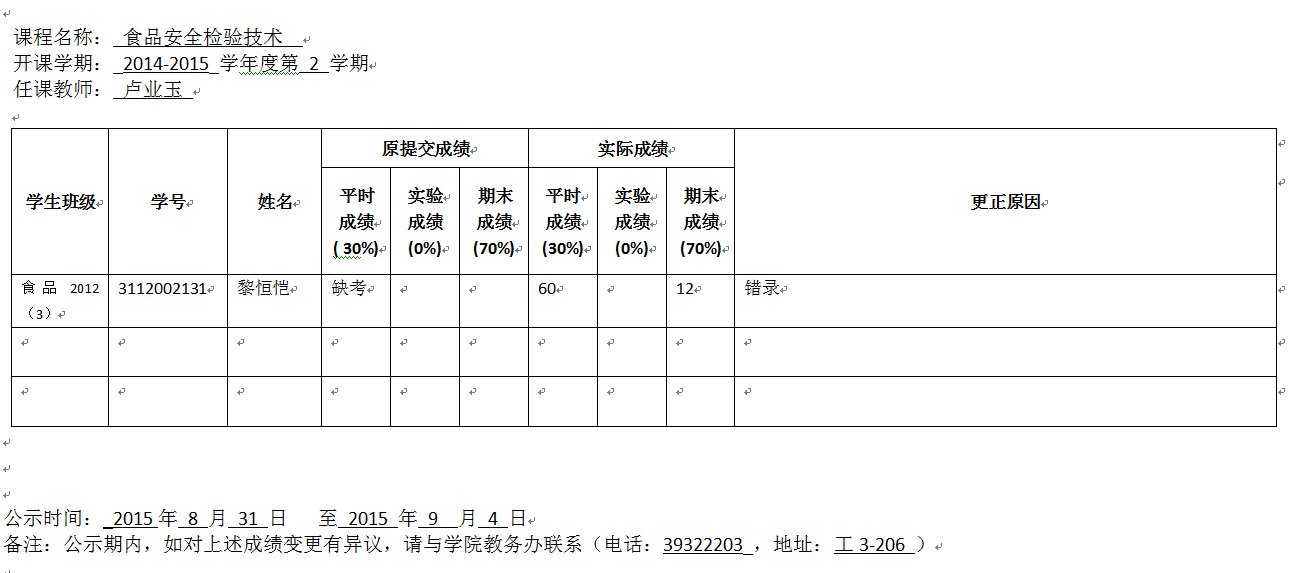 成绩变更公示