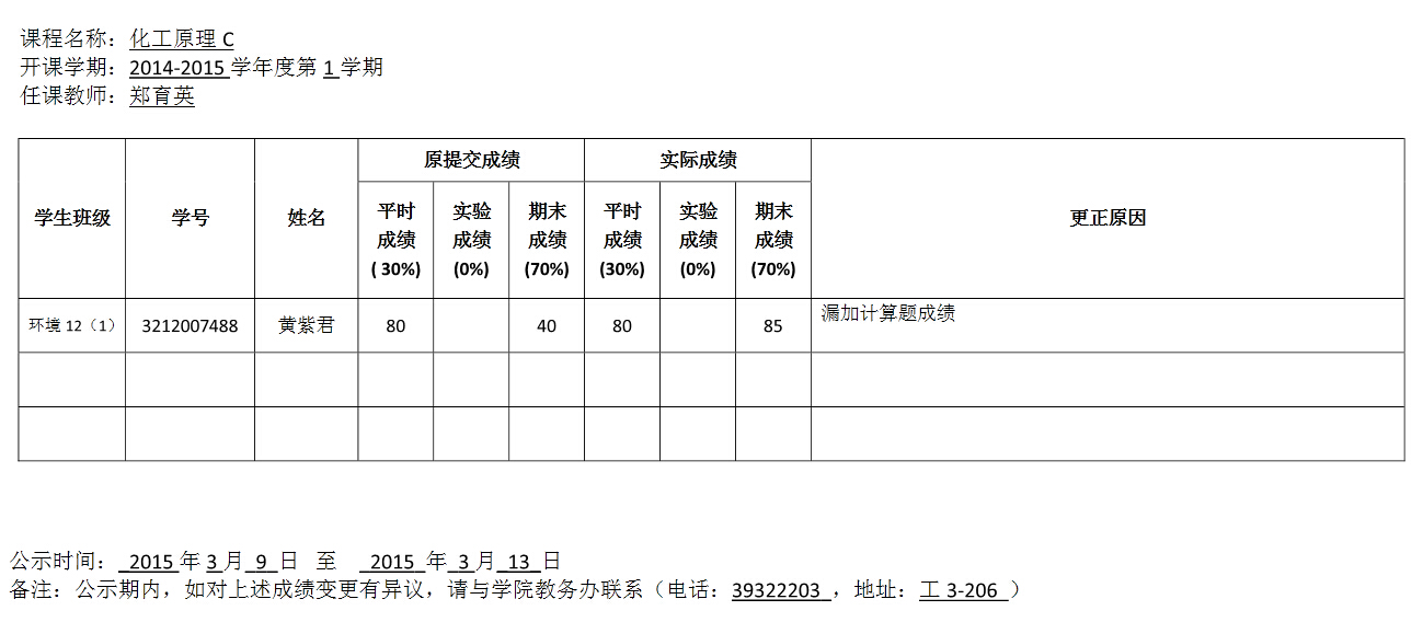 成绩变更公示