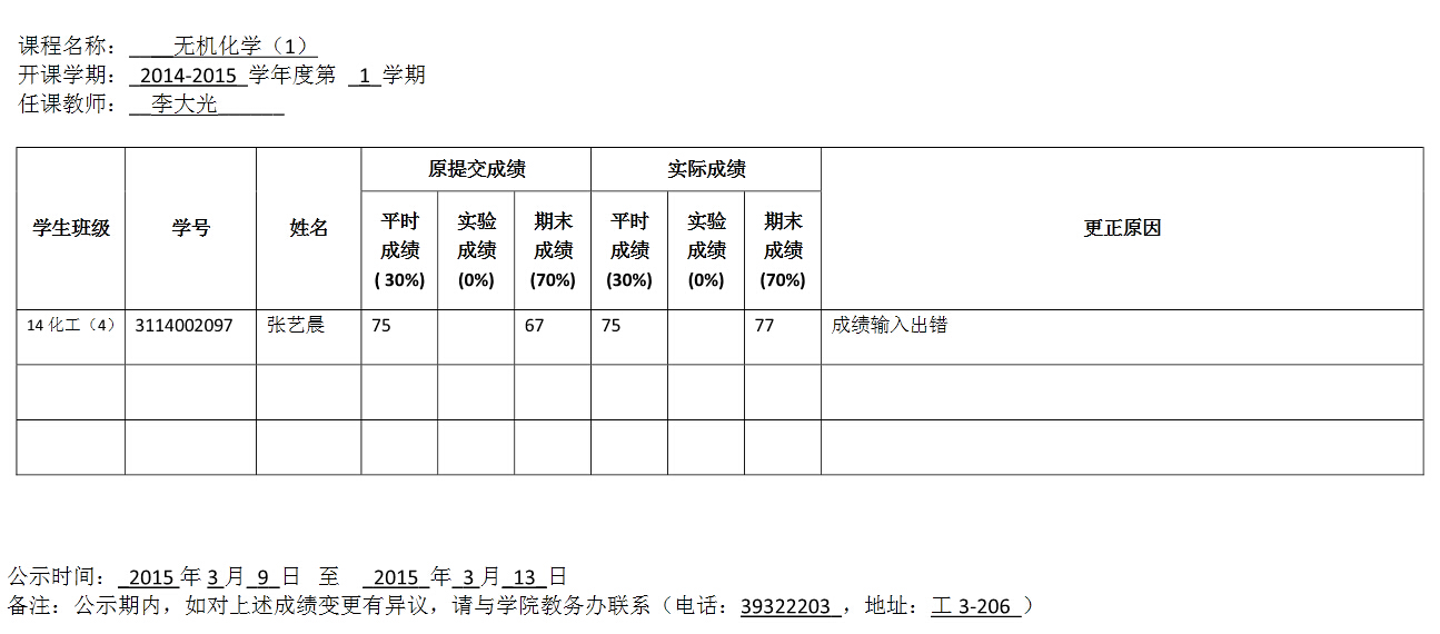 成绩变更公示