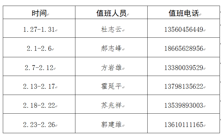 2015年寒假值班安排表