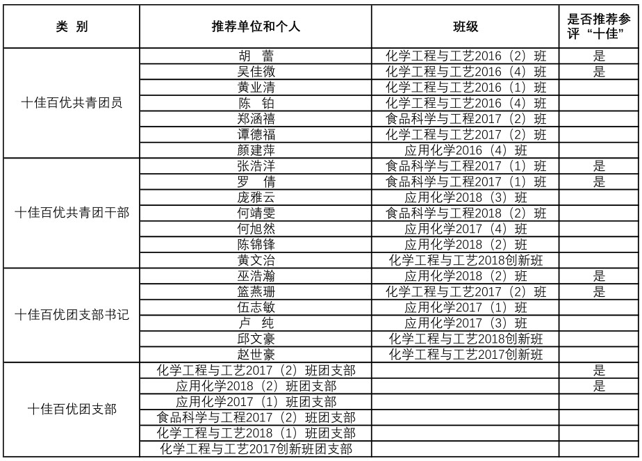 根据学校《关于开展2019-2020学年“十佳百优”系列评选活动的通知》有关要求,经个人或集体申报,学院团委初审,学院评审工作小组审核、评议,拟推荐以下单位和个人参加相关奖项评选,现予以公示。