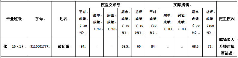 备注:公示期内,如对上述成绩变更有异议,请与学院廖老师联系(电话:39322090,地址:工四-202-1)