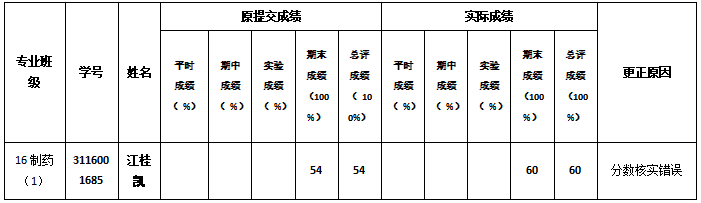 备注:公示期内,如对上述成绩变更有异议,请与学院资料员联系 (电话:39322090,地址:工四-202-1)