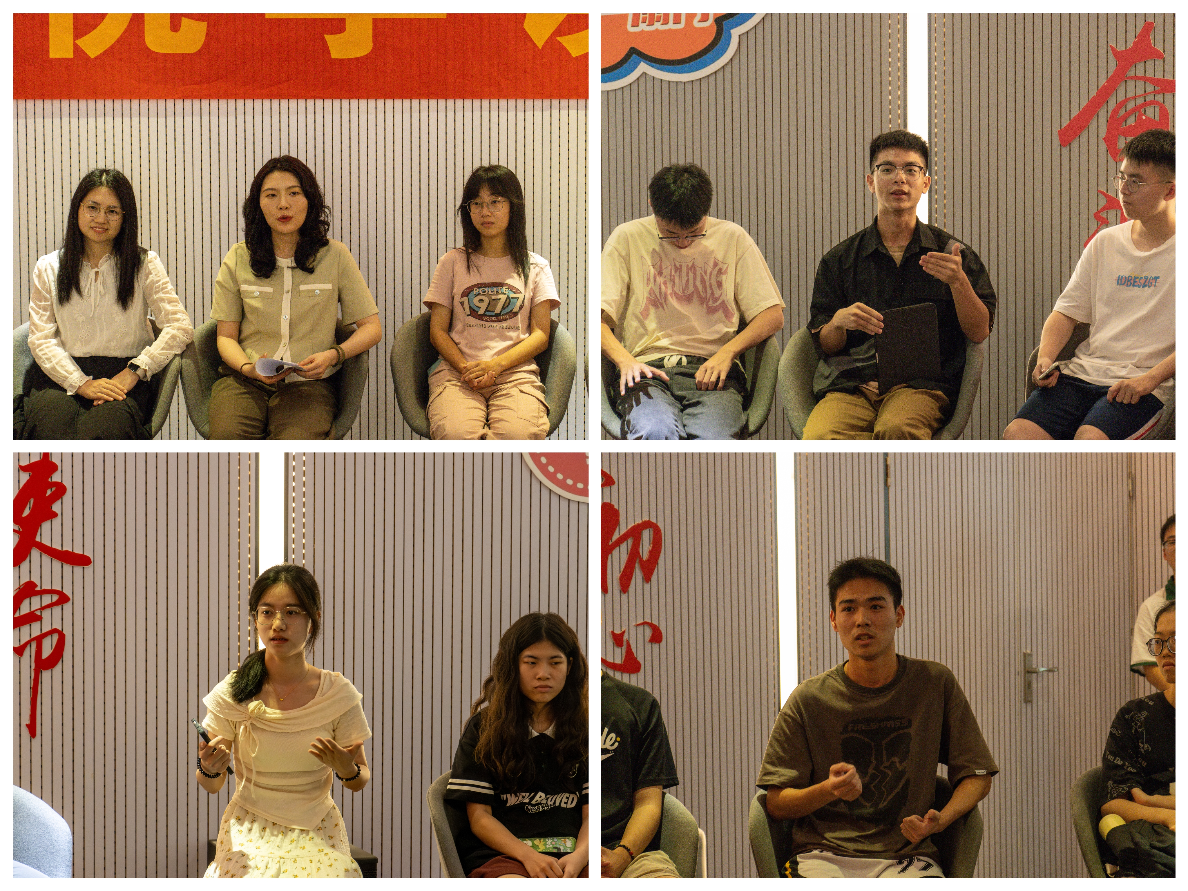 在自由讨论环节,同学们敞开心扉,一起探讨“人生的方向”,纷纷分享各自的人生经历以及对未来的展望,有同学表示在资源丰富的时代,追寻自己的人生方向要敢于尝试,不畏挫折,方能行以致远;两位老师鼓励同学们不断找寻自己的人生方向,把握人生机遇,先树立阶段小目标,并不断实现,人生目标便会顺势而得。