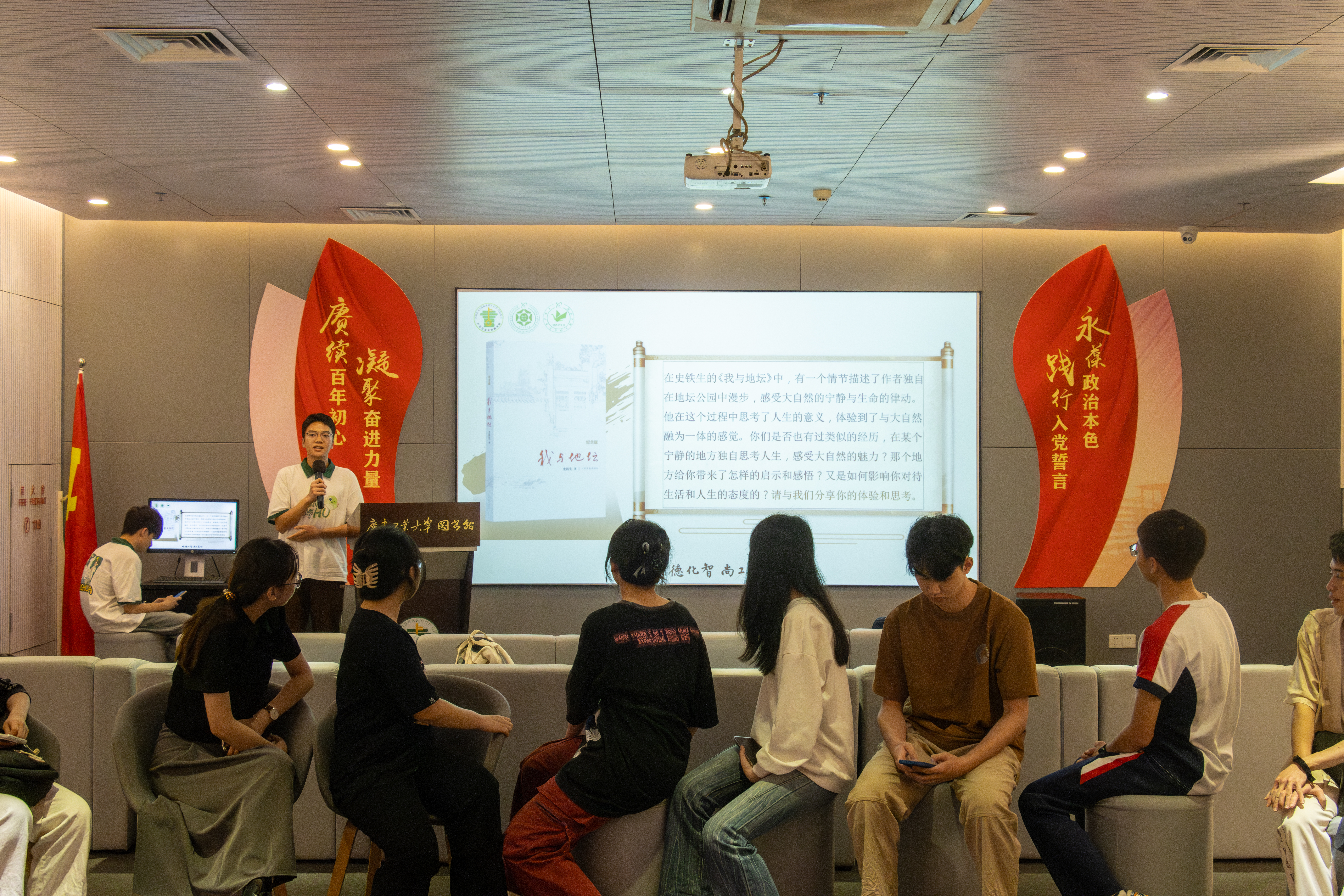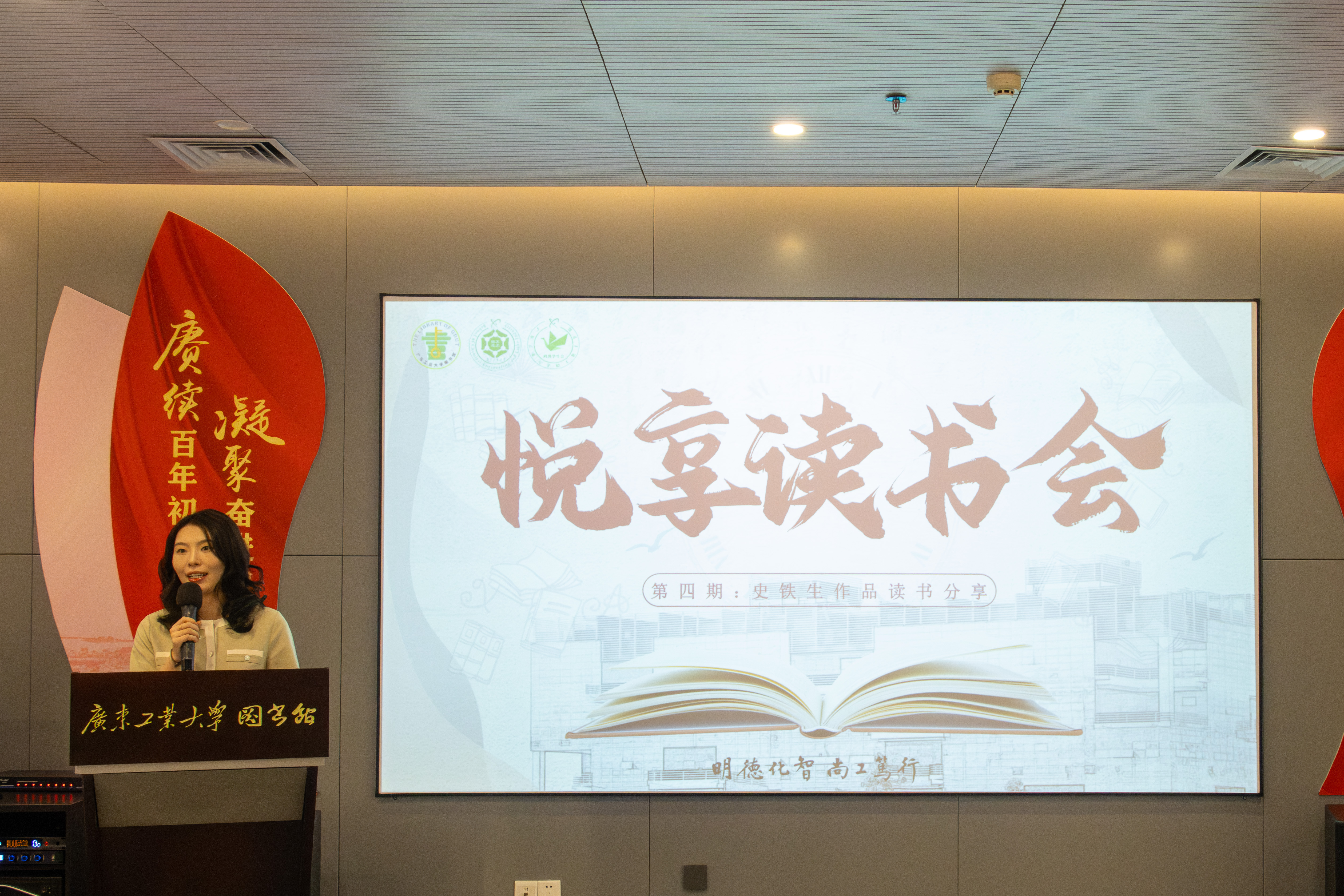 学生会联合校图书馆于2024年4月24日在图书馆视听空间开展第四期悦享读书会。研究生辅导员郭利平老师及二十余名同学参加此次活动,活动由学生会秘书长徐丹宁老师主持。
