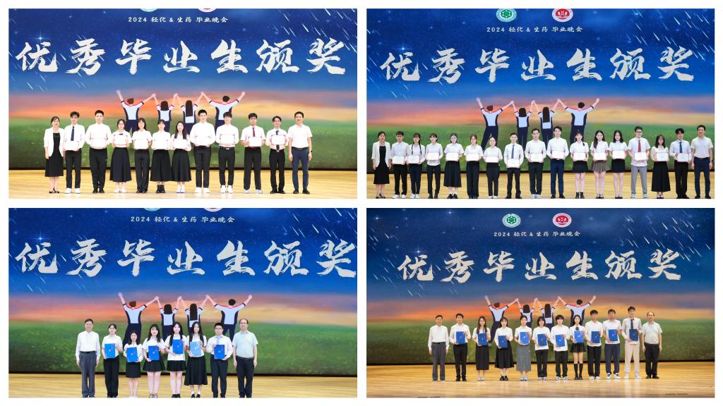 随后在优秀毕业生颁奖仪式上,郑育英、杨刚为轻工化工学院优秀本科、硕士毕业生颁发荣誉证书,徐向东、张智为生物医药学院优秀本科、硕士毕业生颁发荣誉证书,以表彰优秀毕业生在校园中取得的优异成绩,彰显榜样力量,激励广大学子发奋图强、勇敢追梦。