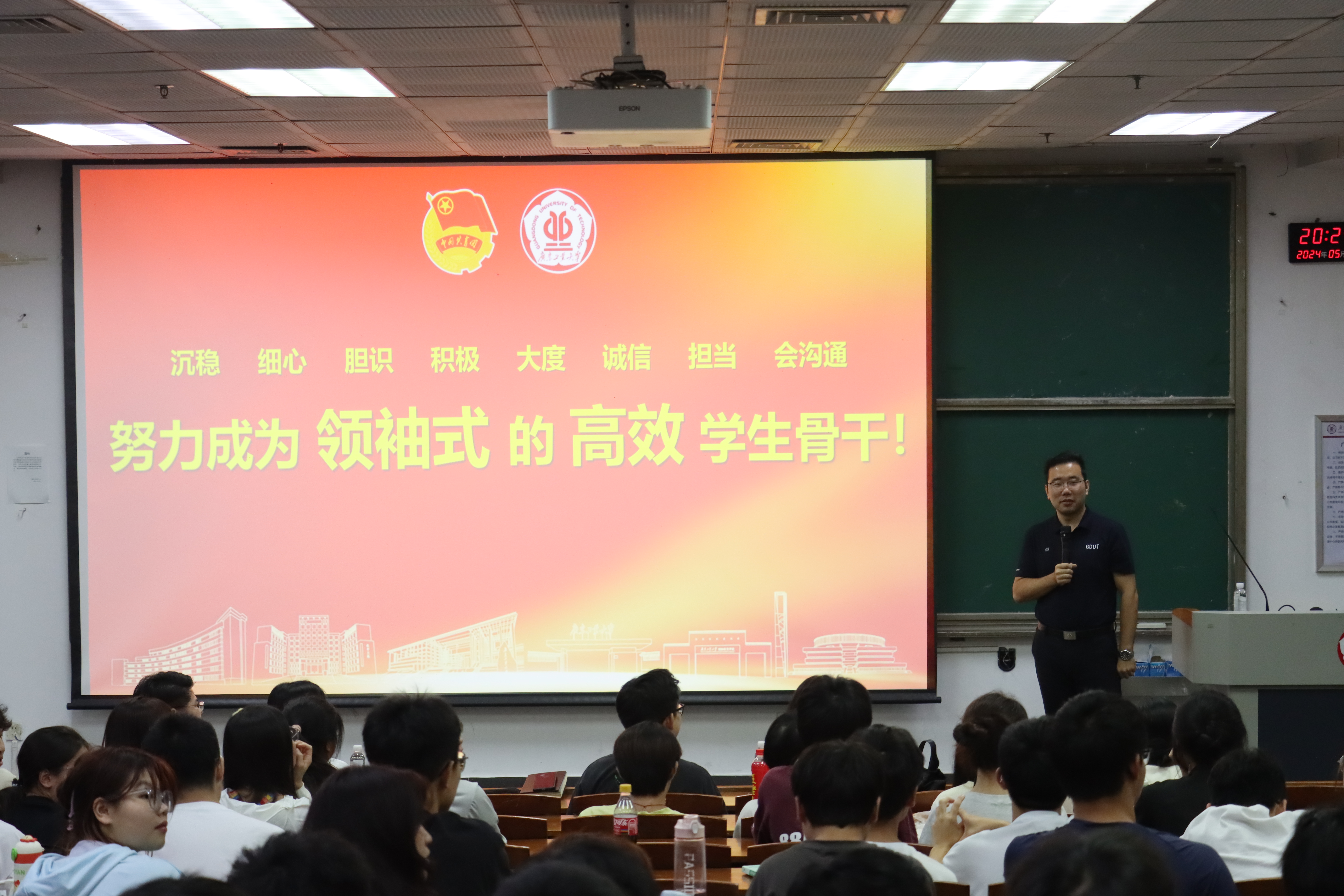 2024年5月9日,“轻苗化才”学生骨干培训营特邀请学校团委组织宣传部部长王冠尧老师讲授培训营第三期课程:学生骨干工作能力的多维提高。在讲座中,王冠尧老师围绕“如何发挥学生干部的引领带头作用,激发团队工作积极性?如何激发学生干部创新思维,建立高效协作的工作队伍?如何提升学生干部沟通技巧与向上/向下管理能力?”三个问题,并结合自己大学以来长期的团学骨干工作的经验和经历,提出了“沉稳、细心、胆识、积极、大度、诚信、担当、会沟通”这八大学生骨干素质要求,并对这些要素进行深入地剖析和解释,结合中国历史和个人经历,以史为鉴,分析各种要素对学生骨干工作的重要性,鼓励同学争做领袖式的“高效”学生骨干,尽心为同学做实事,切实为学校做贡献。
