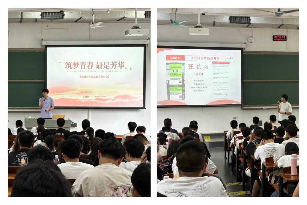 2022级李冠炜同学、黄健伟同学,为新生做学生党员心得分享,他们分享了自己的入党心路历程,讲述了入党初心,并以师兄的角度为新生们分享成为党员后的心得体会,最后,他们分享了自己在学习、学生工作以及校园生活中的实用建议,希望能从多方面帮助新生早日步入大学正轨,积极向党组织靠拢。