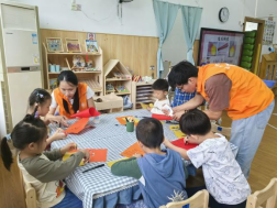 课程后半段,为了带领大家亲身感受这份激情与荣耀,并加深对奥运精神和中国传统文化的理解,志愿者们在讲解奥运火炬上的文化元素并组织小朋友们亲手制作奥运手工火炬。彩纸、剪刀、胶水等工具在大家的手中,经过天马行空的想象力,被制作为一个个带有小朋友们寄语与签名的手工火炬。