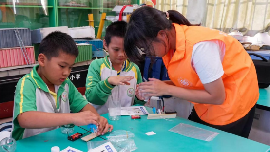 团委根据学院专业特长与小学生兴趣,设计了自制灭火器课程和盐水发电课程。在科普课上,主讲人充分运用专业知识,详细介绍自制灭火器和盐水发电的原理,耐心指导同学们亲手制作小实验。此活动不仅是知识传授,更是精神传承,以实际行动彰显了志愿服务精神中的友爱和互助,培育孩子社会责任感,催生更多未来公益力量,促进社会互助风尚的形成。