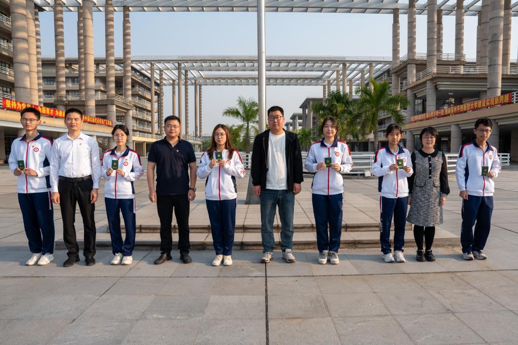 青年兴则国兴,青年强则国强。为提高学生对共青团的认同感、自豪感和责任感,黄艳苹老师、杨刚老师、董伟雄老师、李韵捷老师为新团员颁发团员证,佩戴团徽。