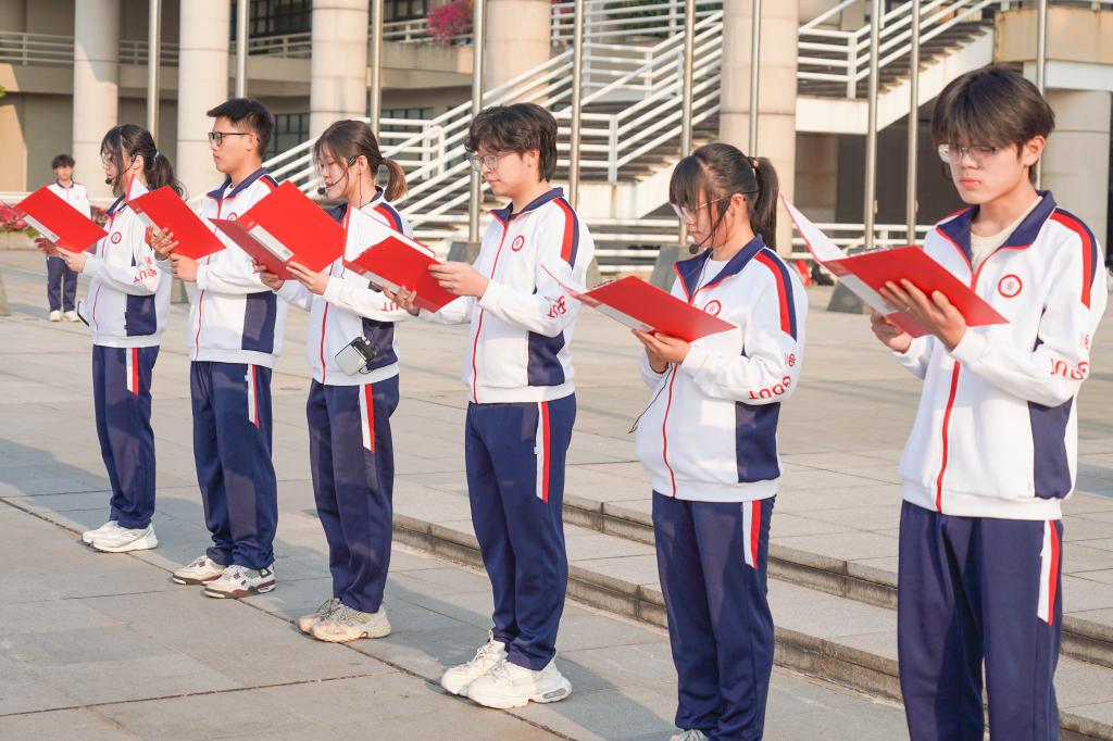 山海相连,共育英才;挺膺担当,勇攀高峰。这场升旗仪式不仅是新学期的起点,更是一曲青春的集结号,引导同学们在担当中历练,在奋斗中成长,怀揣智慧和坚韧,用汗水、自信与本领,在青春的赛道上跑出强国复兴的好成绩,书写勇毅前行的人生答卷。