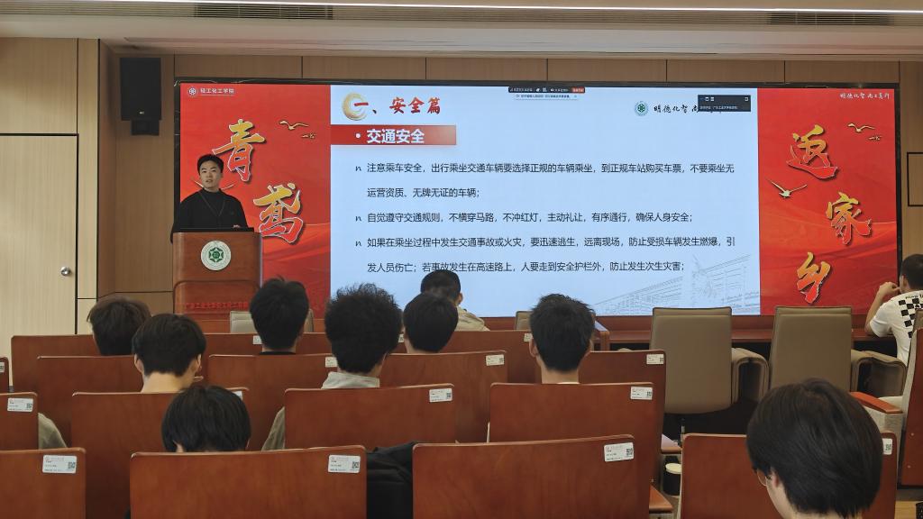 1月16日下午,学院在工学四号馆204报告厅组织开展安全培训会。张昊昀结合实例,系统讲解了交通、人身、财产、饮食及网络等方面的安全注意事项,并就新闻宣传、影像采集等工作规范作了提醒,为实践活动的顺利开展筑牢安全基础。