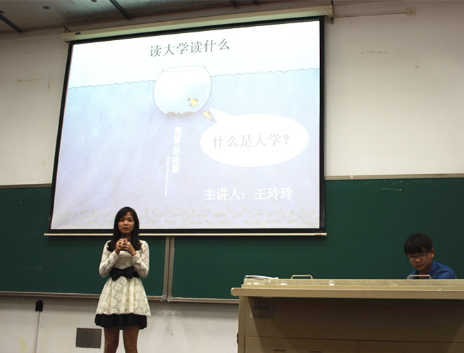 李松蔚同学以“我们为什么上大学?”开场,谈到大学是学习专业知识技能、培养综合素质、养成良好习惯的重要阶段。外出求学的我们,不应该为了摆脱家里的束缚而辜负父母的期望,更不应该碌碌无为消磨时光。王玲玲同学通过鱼与大海的故事,提出大学应该摒弃两种态度——过分消极与过分乐观,认为读书无用论,或者读书是成功的阶梯、摆脱贫穷的跳板,都是较为极端的认识。杨惠萍和蒋映枚同学围绕“应该怎样读大学”展开叙述,让始终迷茫或者目标清晰的同学都收获了满满的正能量。
