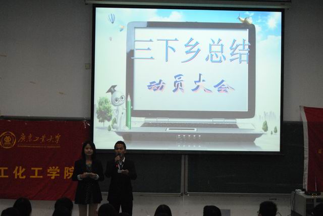 大会首先回顾了九支“三下乡”社会实践服务队的点滴经历。之后,团委书记林焕章老师为同学们讲解了大学生“三下乡”社会实践活动的意义,鼓励同学们毕业后扎根基层,把文化、科技、卫生的知识带到基层去,奉献爱心,播种希望,促进城乡和谐发展。