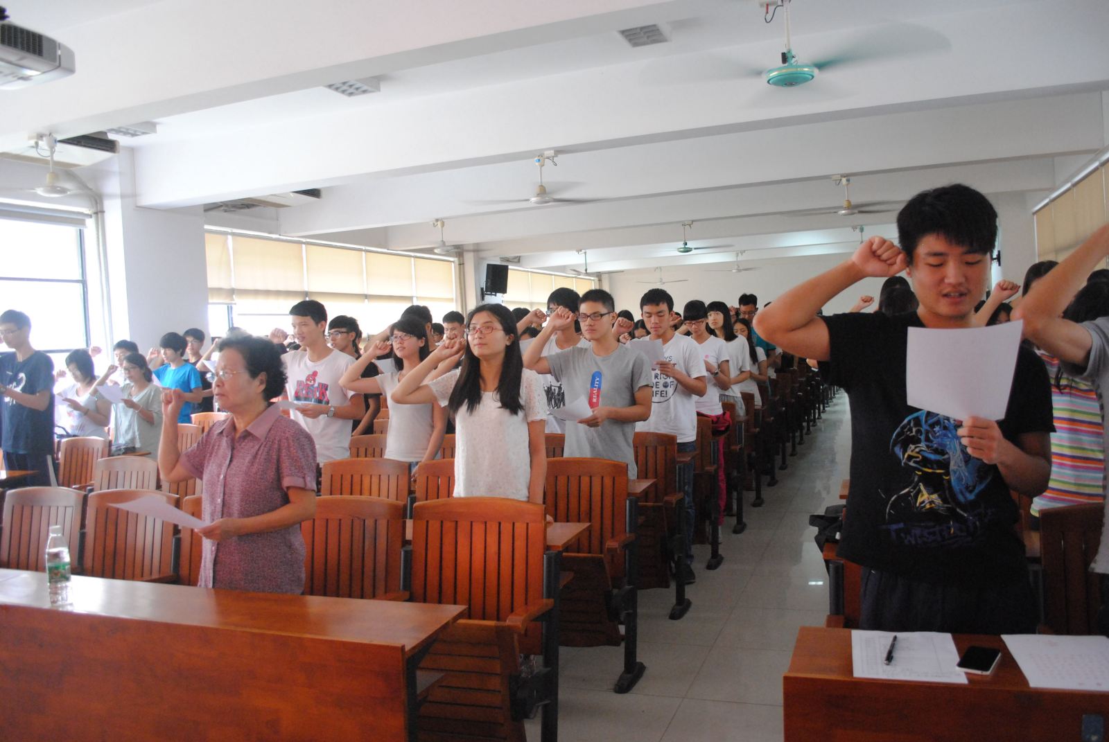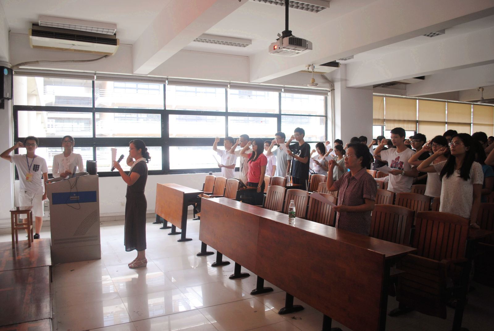 党委英健文副书记向黎碧娜老师对于学生党员的深切关怀表示感谢,同时也对在场新党员们给予了厚望。相信全体学生党员能够在铿锵有力的誓词中备受鼓舞,也会在学校及学院党委的关心和引导下更好地成长成才。