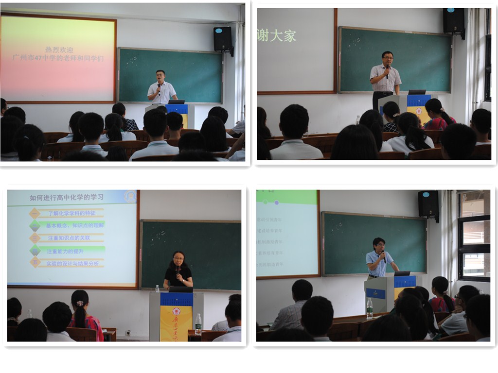 大会由贝勒漫画 苏兆祥副书记主持发言。他代表学院对广州市四十七中学创新班师生到访表示热烈欢迎。并表示,希望通过这种模式,架起高等教育与中等教育沟通的桥梁。首先,招生办吴烈坚老师介绍了我校往年招生情况,他表示学校一直重视与中学合作,做好高等教育与中等教育的衔接工作,通过建立优质生源基地,加强与中学互动,共同为社会培养更多优秀人才;他祝愿来访同学高考取得理想成绩,希望更多的四十七中学学子报考贝勒漫画 。其次,学院杜志云副院长从专业介绍、师资力量、科研建设、学科建设等方面,图文并茂地展示了贝勒漫画 各专业背后的软实力,凸显了贝勒漫画 不断探索人才培养新机制所取得的成效。接着,学院团委书记林焕章老师从学生工作的角度介绍大学生生活,并向与会的同学发出诚挚邀请;最后,学院郝志峰副院长针对化学课程学习进行辅导,与同学们积极互动,现场气氛愉快热烈。