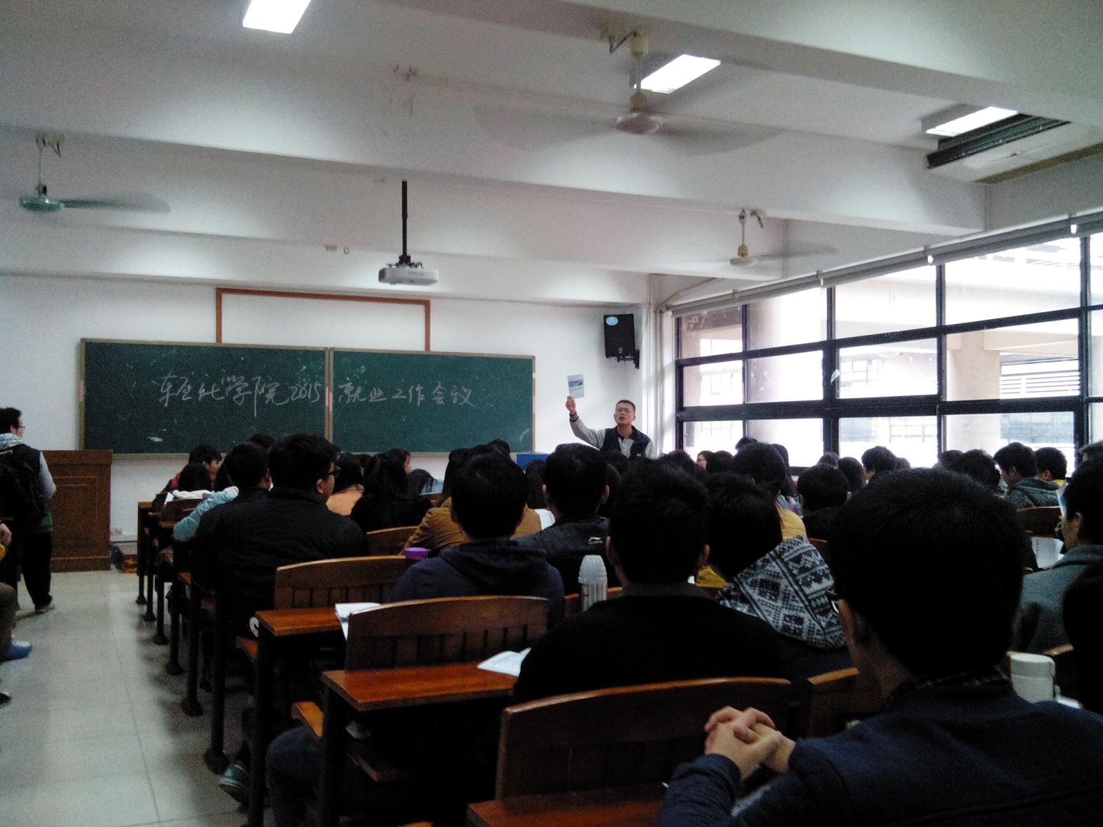 在工学三号馆208举行2015届毕业生年级就业工作会议,院党委苏兆祥副书记、年级辅导员魏源老师、冯树清老师及2015届在校毕业生参加大会,会场座无虚席。