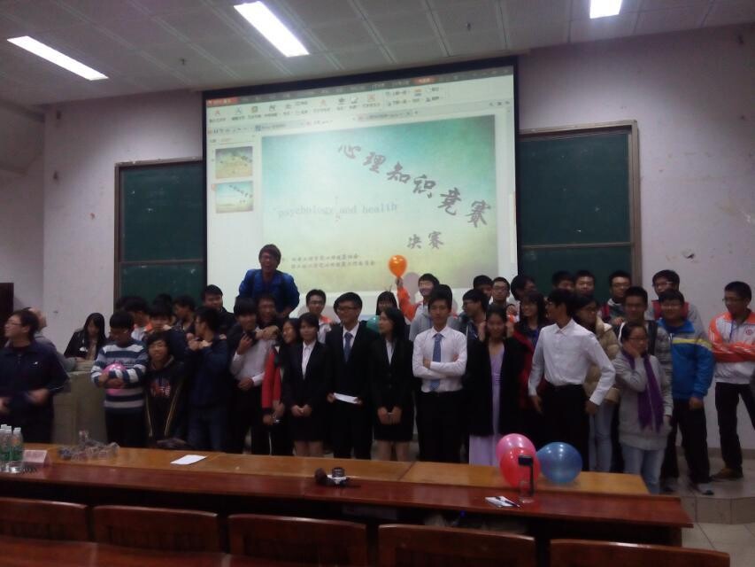 心协与机电学院心协联合举办的心理知识竞赛决赛在四号大课室隆重拉开帷幕。出席本次活动的嘉宾有广州中医药大学的三位实习心理指导老师李璟、易仲怡、李齐勇,以及各兄弟学院心协的学生代表 。