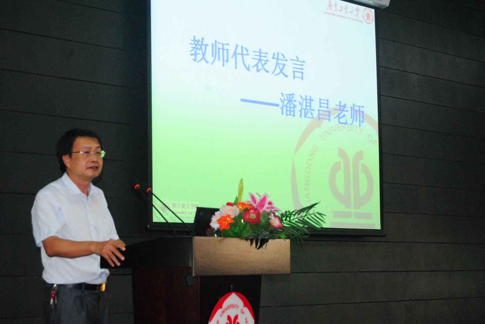 潘湛昌教授代表学院全体教师发言,向2015级新生的到来表示热烈欢迎。潘老师表达了师长与学生之间“亦师亦友”的融洽关系,希望做学生的良师益友,也勉励同学们成为有道德、会学习、意志坚强的好学生!