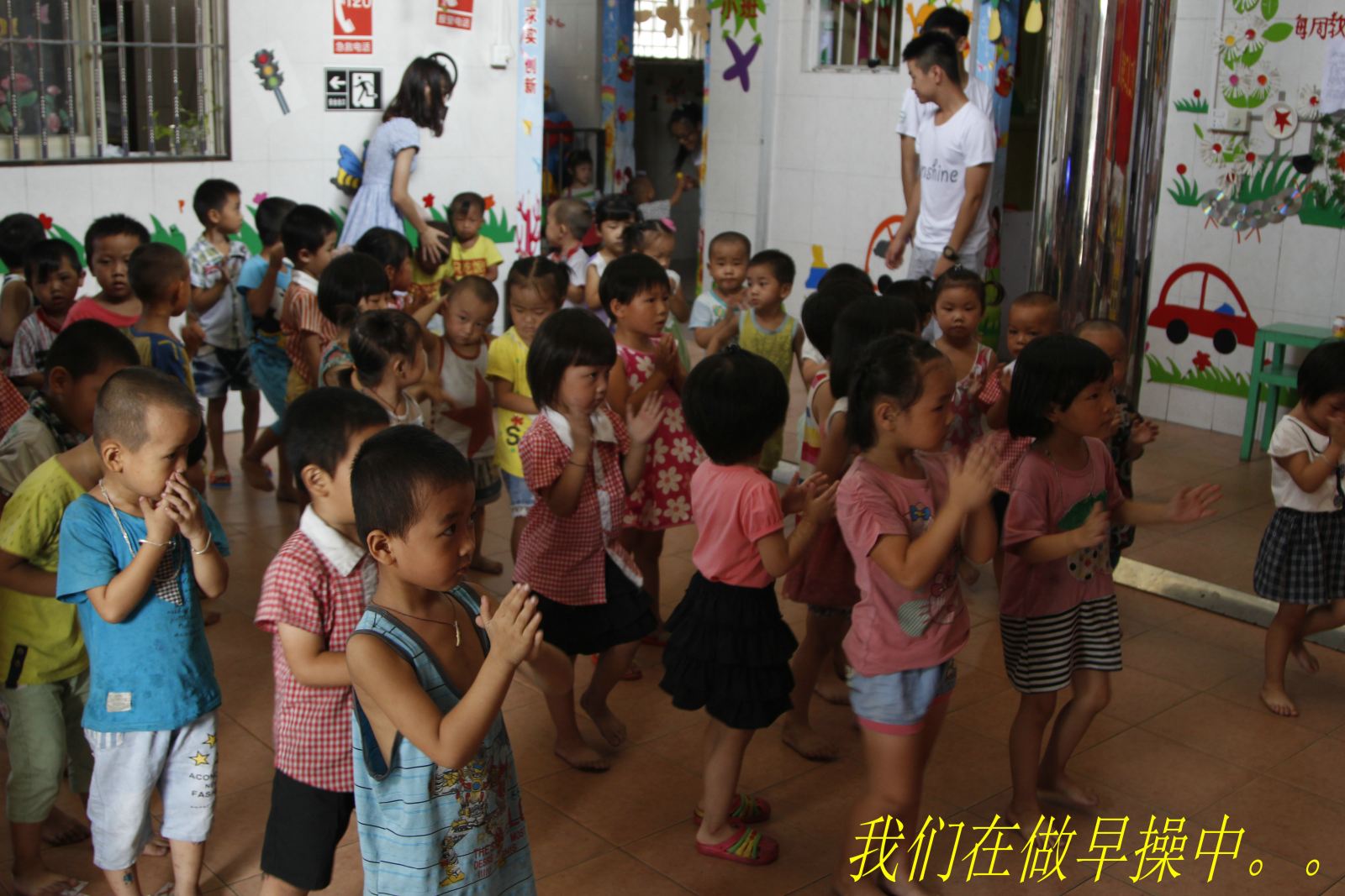 下午的活动是教小朋友们唱歌。小朋友们十分配合,学得也快,一节课下来就会唱了。教学的同时也让我们了解到一些小朋友的性格特点,这样有助于我们跟他们在之后一段时间的相处,当然,小朋友们也是乐在其中。