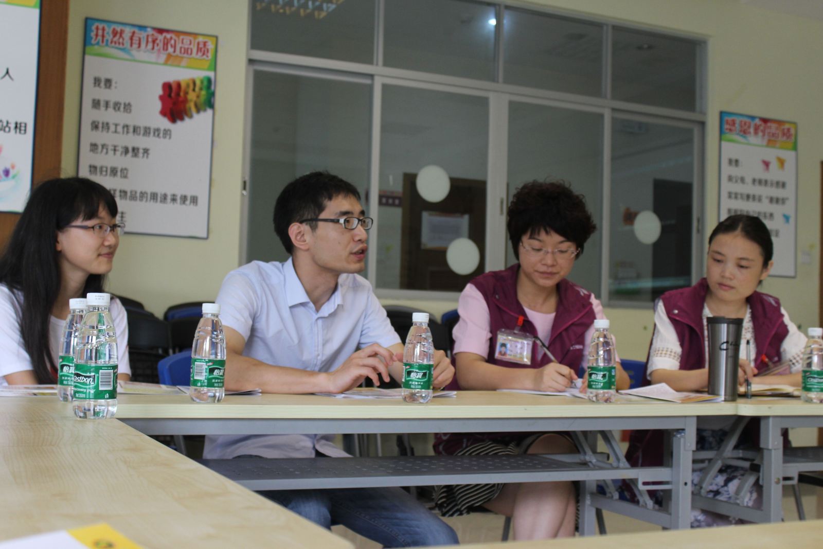 到达后,时间队员受到了时间单位的热情欢迎。通过简短的见面会,同学们与实践单位社工们彼此有了初步的了解,接着,同学们接受了实践单位安排的义工培训,并与社工完成工作对接。