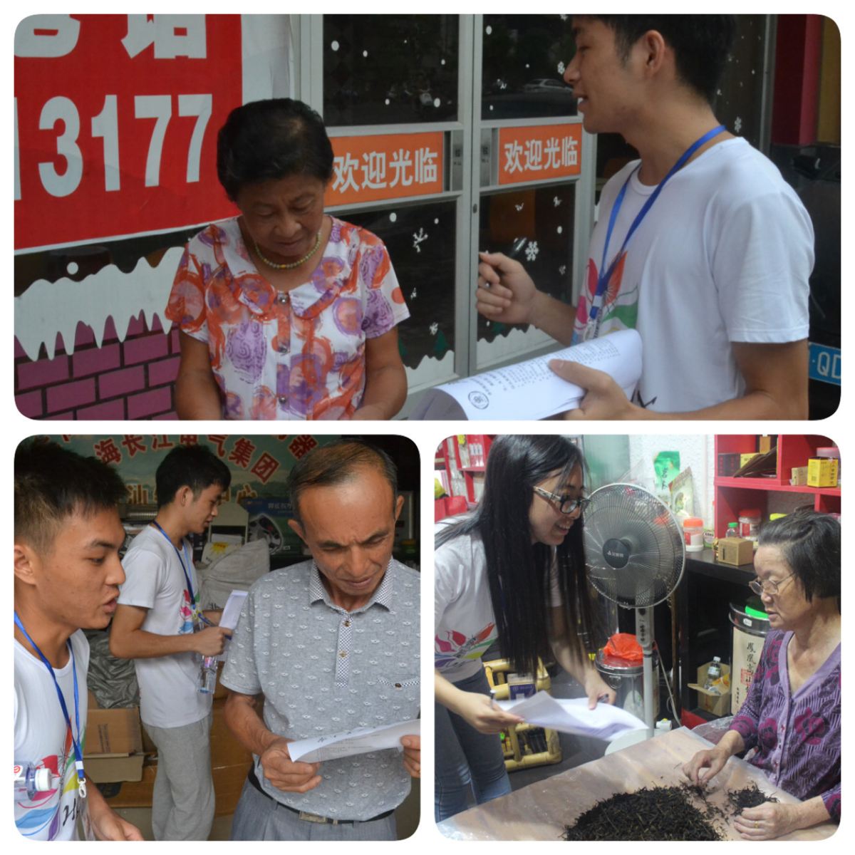 志愿爱心服务以及深入社会调研的意图。通过不懈努力,我们终于得到了街坊们极大的认可与支持,调研活动顺利完成。