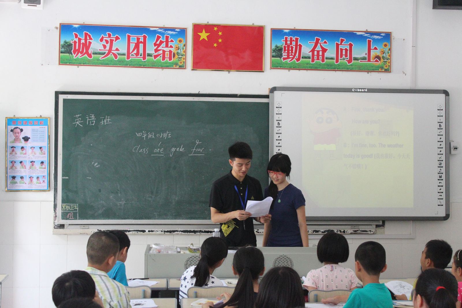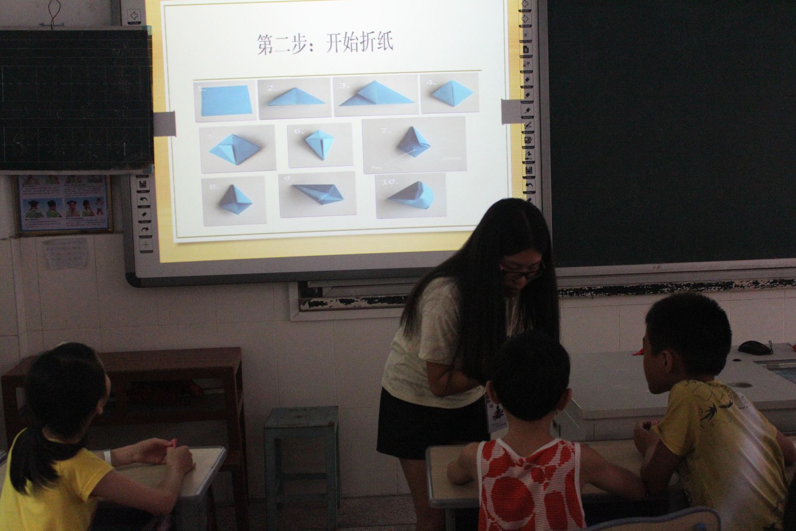 美术班主要进行手工折纸的教学,旨在培养小学生的合作能力和动手能力,三节课的教学,学生在实践队员的指导下出色地完成了任务。英语班重点教育小学生形象地记忆英语单词,并结合口运用,让教学更为生动。舞蹈班的小学生在实践队员的带领下,加强了基本功的训练。下午,实践队根据所学专业,融合学员兴趣,以大课堂为单位开展了食品安全、科学实验两门课程,大大地提高了课堂上的活跃度以及积极性。