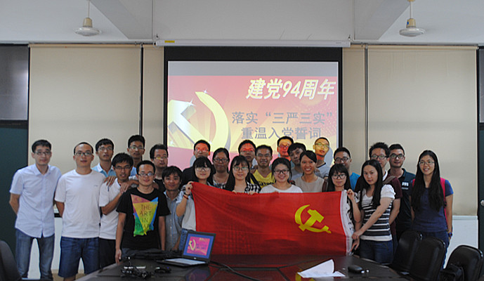 结合学校“三严三实”专题教育工作要求,在全体学生党员、入党积极分子中开展“红色七月”系列活动,包括观看历史文献纪录片《筑梦中国》,召开以 “落实‘三严三实’,重温入党誓词”为主题的组织生活会,以及重读一遍党章的学习讨论会。