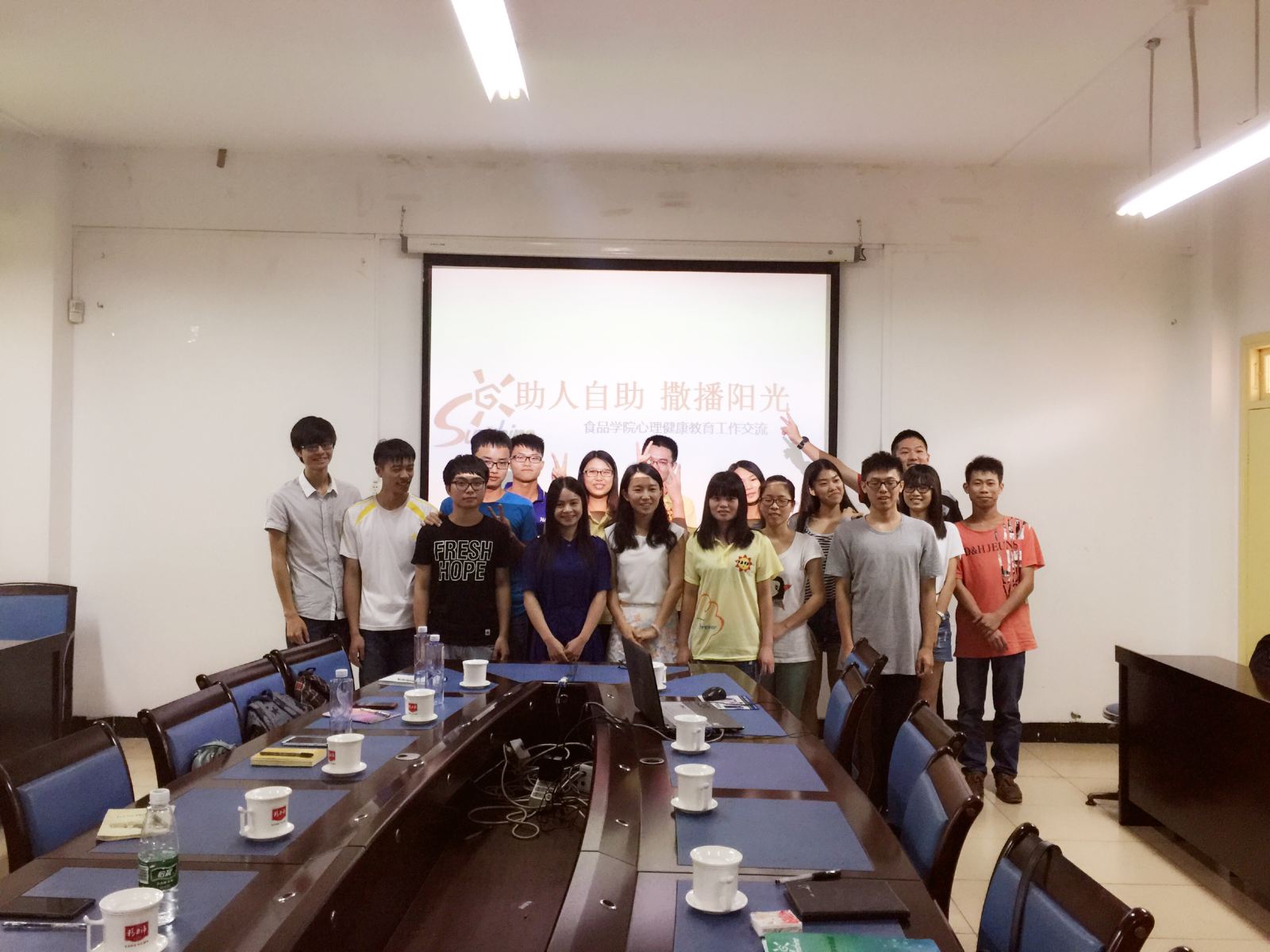 心理健康指导老师张明携阳光心协一行10人到华南农业大学食品学院交流学生心理健康工作,华南农业大学食品学院心理健康指导老师吴佳敏及心理健康协会成员热情接待。