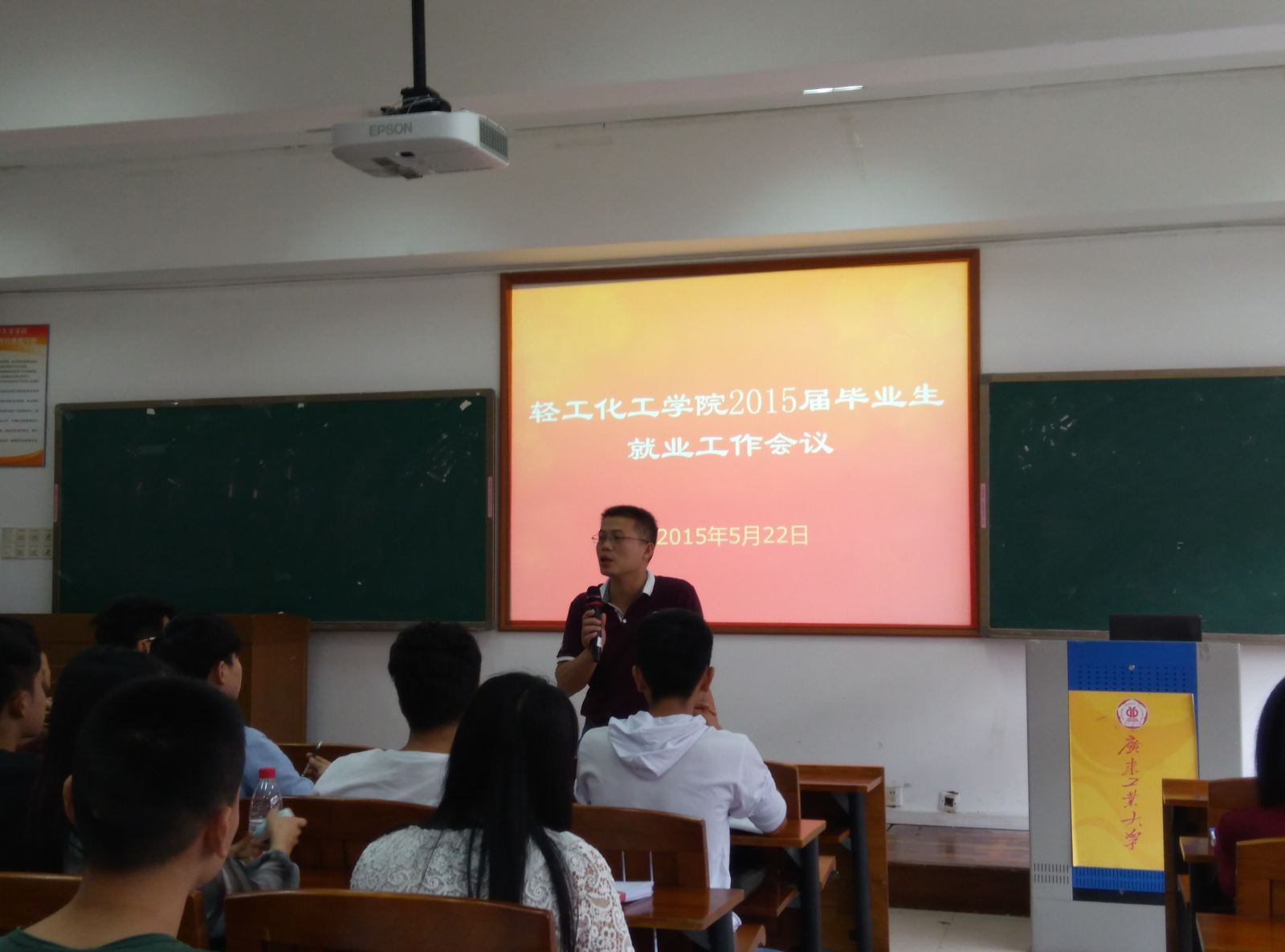 在工学三号馆208举行2015届毕业生就业与派遣工作会议,院党委苏兆祥副书记、毕业班辅导员老师魏源、冯树清及11级各班班长、党支部书记参加了会议。