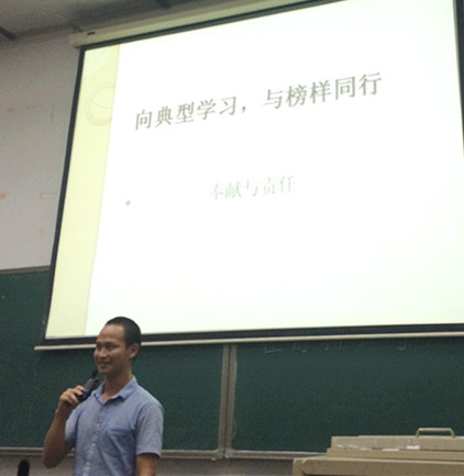 第二位讲师是来自国防生党支部的林嘉伟同学,他结合国防生坚持不懈的训练、学习以及自身的理想追求,引出本期党课演讲题目——奉献与责任。林同学由当代国人对于抗战胜利纪念日是否熟知心间,牺牲小我、舍己为人的奉献精神是否敢于发扬等一系列的发问,谈及当今社会英雄观、道德观的缺失现象和由此带来的危害。从自身到家人,再到身边同学朋友,林同学有感而发与大家分享了许多小故事,虽然言语质朴,但每到动情之处却是令人激动不已,让在场的同学们无不感受到一名优秀国防生党员的坚韧毅力与执着追求,以此鼓舞大家力所能及地发光发热、奉献自身力量!