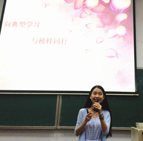 来自12级食品党支部的蔡安琪同学,以诙谐幽默的自我介绍开场,通过讲述大一竞选团支书失败,从而激发自己奋发努力完成蜕变的经历,由此与大家分享对自身影响深远的一种优秀品质,自省自律的积极作用。蔡同学由我们熟知的英雄人物与光辉事迹作为切入点,引起大家对于学习榜样的共鸣,同时结合身边同学的点滴小事,生动阐述“榜样不一定完美,但自省使他们更成功”的观点,并与现场同学积极互动、探讨对于 “见贤思齐,见不贤而内自省”的独到见解。最后,蔡同学将“自省在昨天,改变在今天,优秀在明天”的三句箴言送与大家共勉,赢得全场热烈掌声。