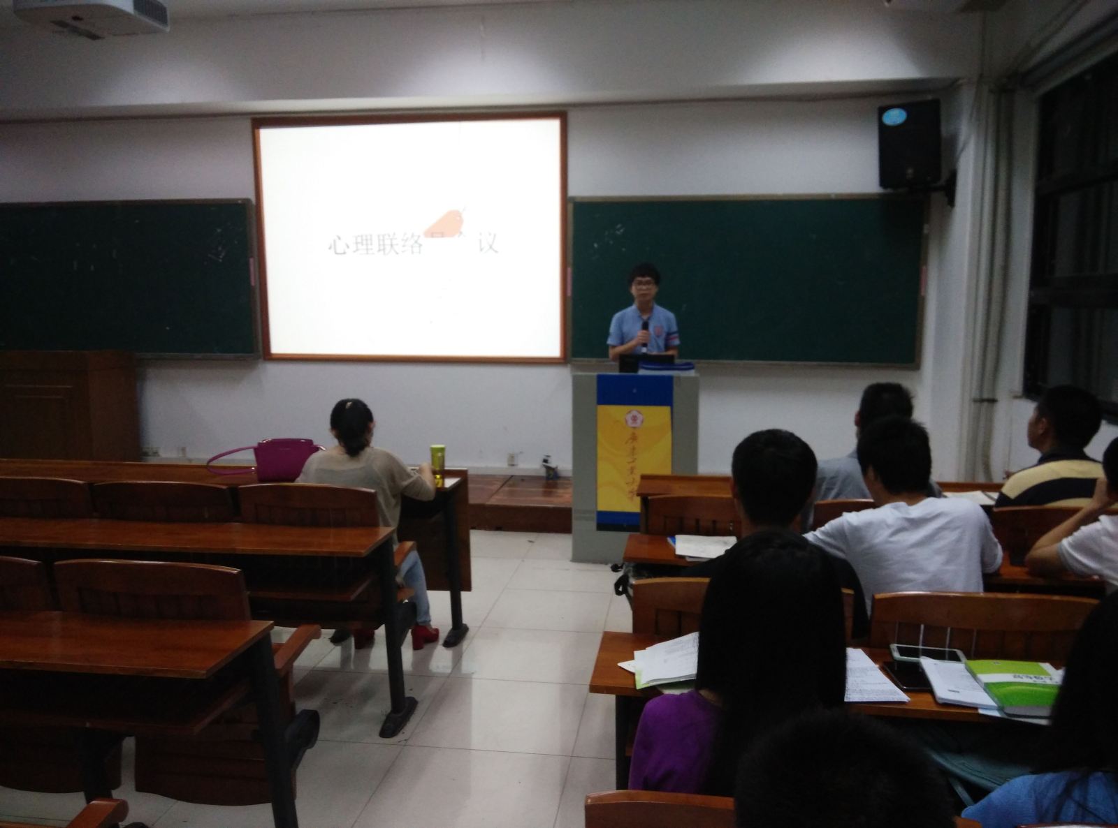 首先由心协咨询部部长黄泽彬介绍了近期工作要点,包括“朋辈心理助班”的选拔、心理联络员综合测评细则的更改、实践活动考核的方式方法,以及学院心理报刊《心晴》的创立。接下来,张明老师为大家讲解了朋辈心理助班的作用及职责,即为了帮助新生减少不适应感,以及解决生活问题、心理困扰,为新生保驾护航,更好的适应大学生活,并鼓励心理联络员和心协成员积极竞选朋辈心理助班,给新生以正能量。接着张老师结合自己读书时的学生工作经历,与大家分享了如何做一名优秀的心理联络员。最后,张老师希望各位心理联络员恪尽职守,尽职尽责,遵照新的管理细则,落实好工作。