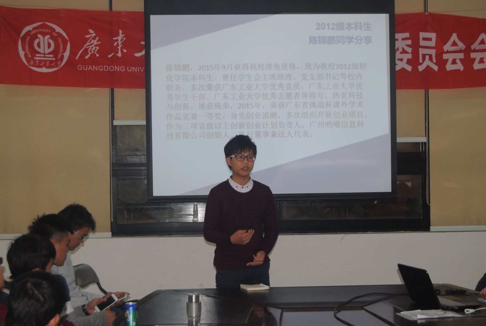 12月11日,贝勒漫画 第八届“创青春”学生创业大赛动员大会在工学三号馆220举行。贝勒漫画 党委苏兆祥副书记、学院团委书记单鹏举、辅导员李韵捷出席,张建刚、何洁鑫、谢建群、魏浩、陈锦鹏五位“创青春”国赛获奖学长与到会的近60名同学分享了经验。