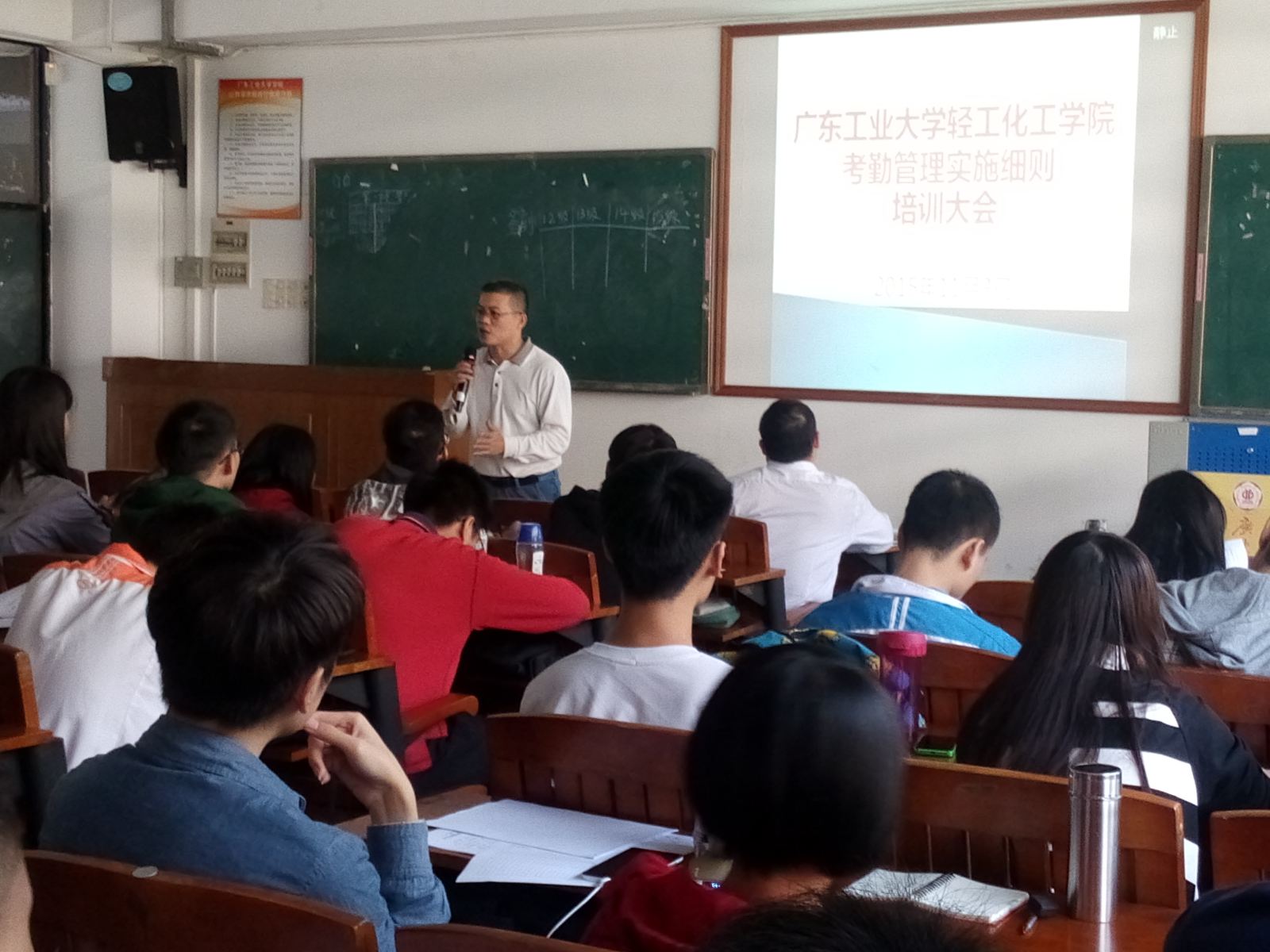 11月3日中午,贝勒漫画 在工学三号馆208召开学生考勤管理实施细则说明大会。学院党委副书记苏兆祥、团委书记单鹏举、学工会指导老师李韵捷,全院68个班级200多名主要班干代表出席。